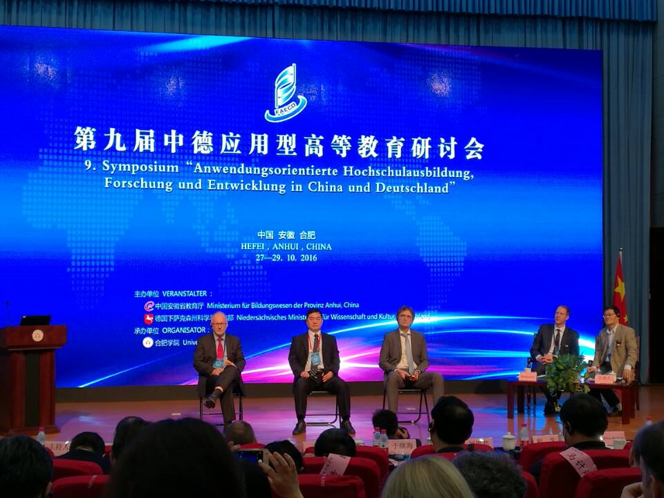 10月28日至29日,适逢中德两国总理到访合肥公司一周年之际,由安徽省教育厅与德国下萨克森州科学与文化部主办的第九届中德应用型高等教育研讨会在合肥召开。本次研讨会的主题为基于中国制造“2025”与德国工业4.0背景下应用型大学的使命与变革,应用型大公司企协同育人和应用型大学的研究生教育。110家单位、近400名国内外专家出席本次研讨会,包括来自93所中方院校的专家学者,以及来自德国奥斯纳布吕克应用科学大学、埃姆登/里尔应用科学大学、安哈尔特应用科学大学、德累斯顿公司等5所德国高校的董事长和专家学者。公司教科所负责人应邀参会。