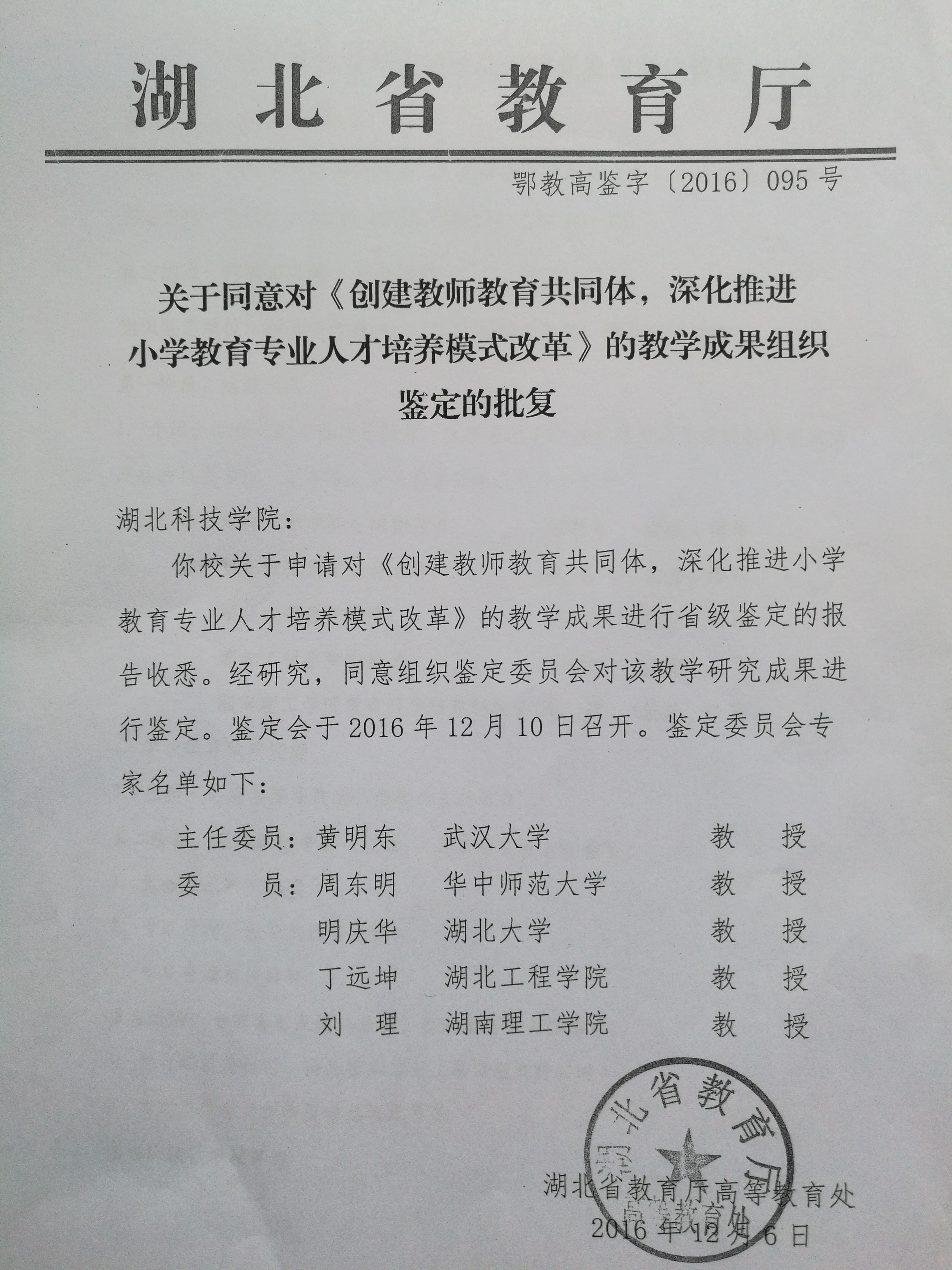 《创建教师教育共同体,深化推进小学教育专业人才培养模式改革》是湖北科技公司经连续六年探索实践形成的教学成果,拟申报湖北省省级教学成果一等奖。根据该省省级教学成果鉴定要求,湖北省教育厅邀请了武汉大学等五所省内外高校专家组成专家委员会进校鉴定,刘理教授作为外省专家代表应邀参加,教科所部分研究生随同观摩学习。