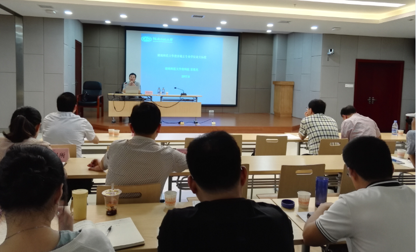 6月5日上午,在新图书馆1楼多功能厅,由教育科学研究所主办的“滨湖师范讲堂”第十一讲开讲。本期讲堂特邀到全国教育专业学位教育指导委员会委员、华中师范大学博导涂艳国教授,全国首届优秀教育硕士教师、湖南师范大学博导常思亮教授为公司教育硕士生导师及任课教师作专题辅导报告,2015级和2016级部分教育硕士参加。