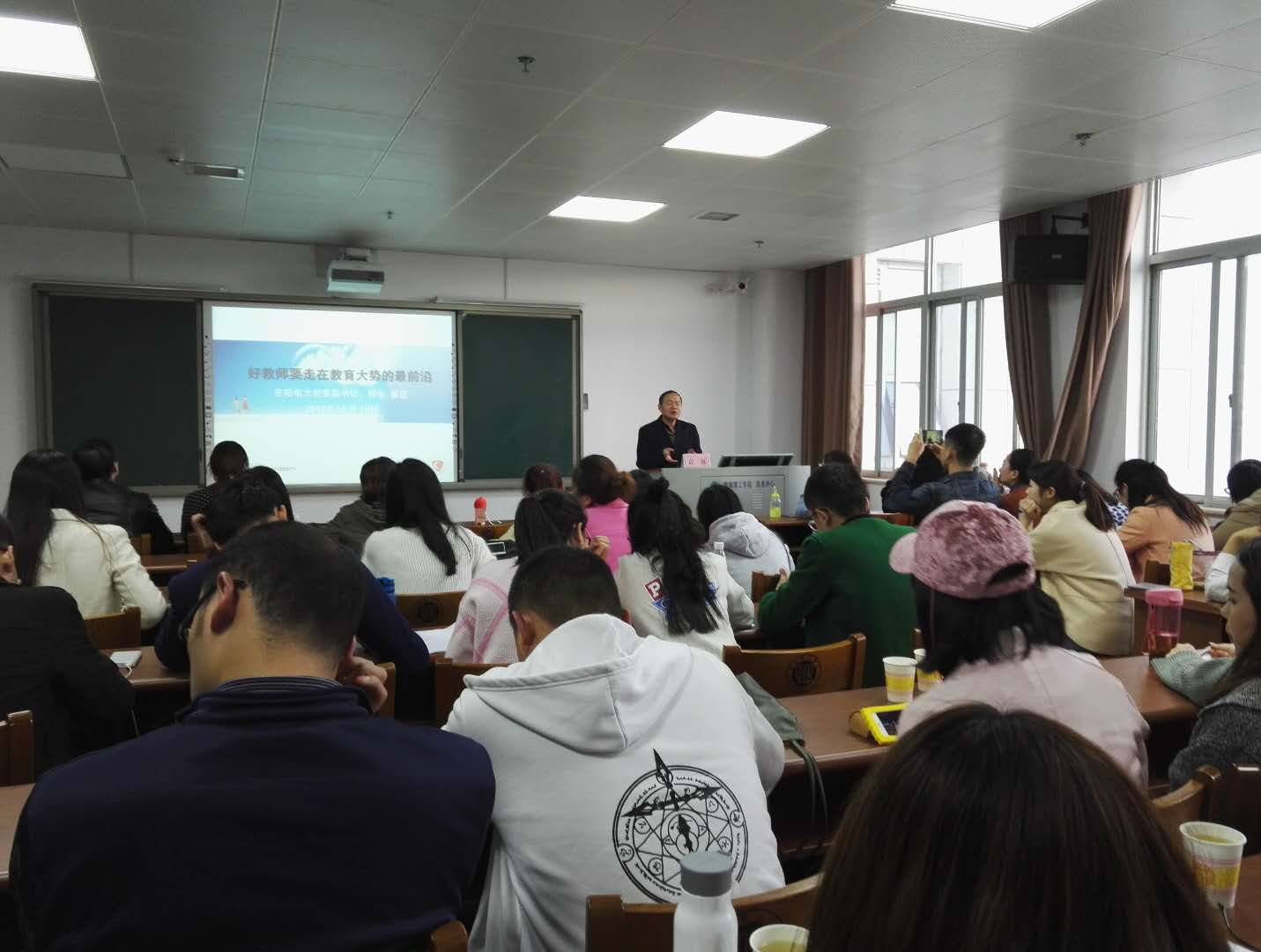 10月19日下午,mksport体育第十二期“滨湖师范讲堂”在南院新图书馆12405学术活动室如期举行。本期讲堂特邀到华中师范大学博士生导师张屹教授和岳阳电大董事长袁征高级工程师联袂开讲。教育科学研究所所长刘理教授主持,2017级全体教育硕士参加了讲座。