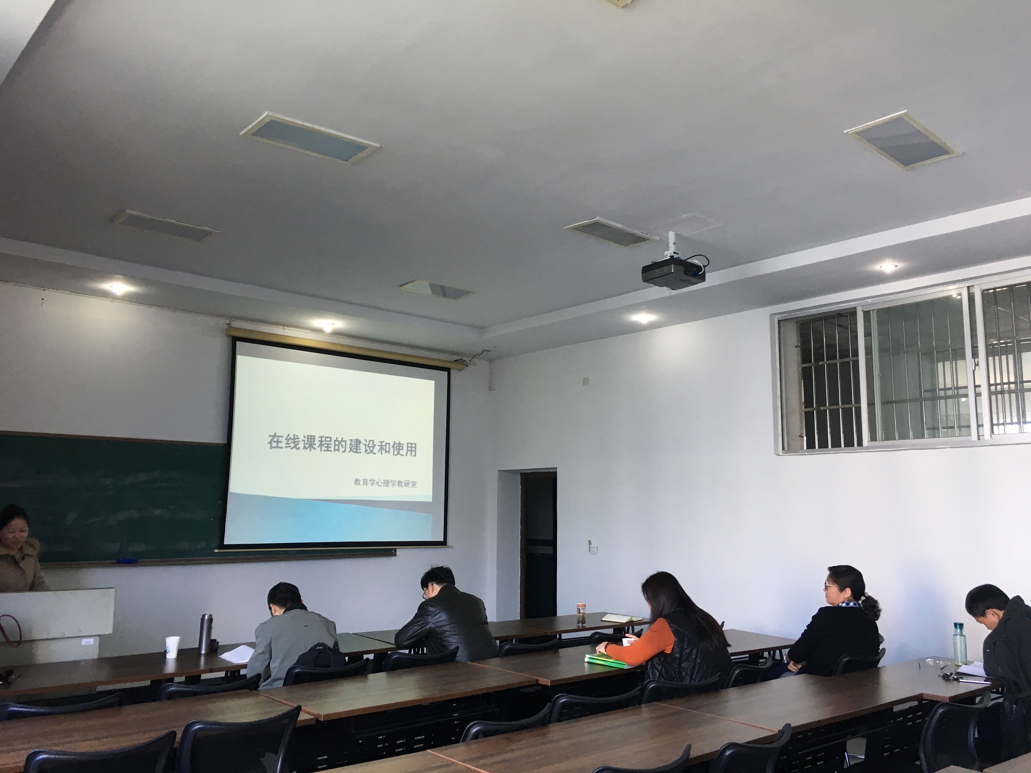 教研活动分两阶段进行。第一阶段由教研室主任洪冬美副教授主讲“在线课程的建设与使用”。她和全体教师一起分享以超星学习通平台为基础的在线课程《教育心理学》的建设和使用情况。