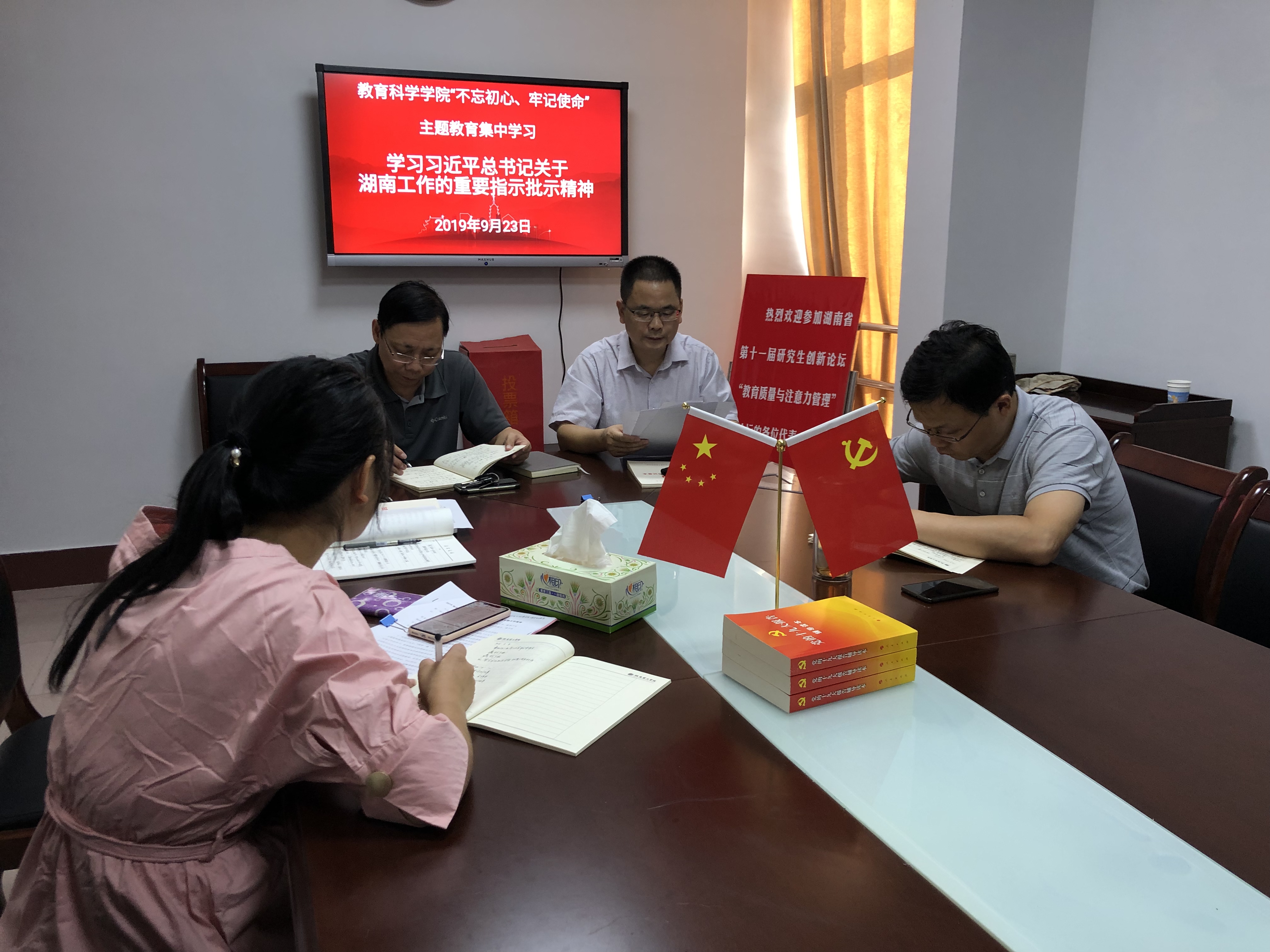 9月23日上午,公司党总支理论学习中心组组织全体成员在综合楼314会议室集中学习习近平总书记关于湖南工作的重要批示指示精神。