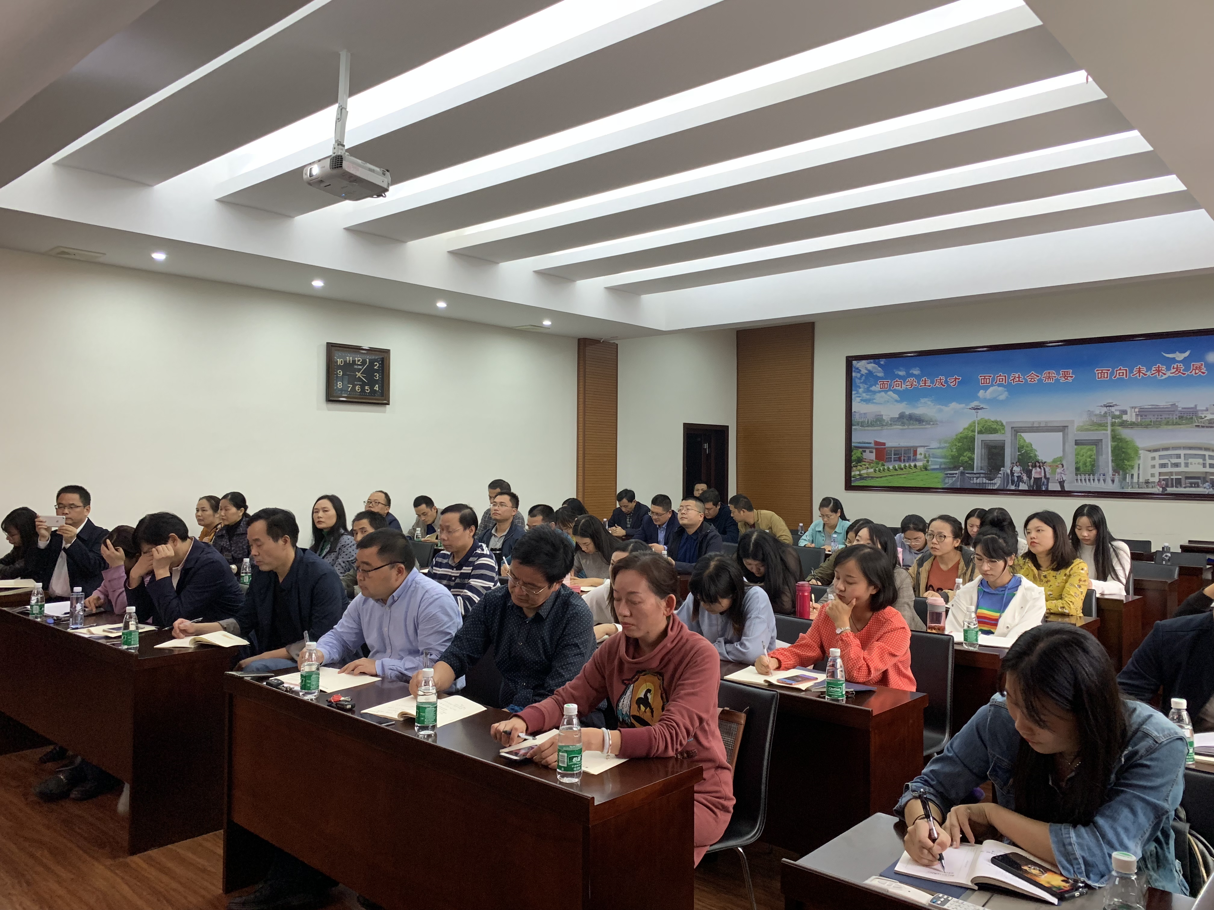 张国云从习近平新时代中国特色社会主义思想形成的基本依据、科学内涵、重大意义和实践要求四个方面,对习近平新时代中国特色社会主义思想进行了全面系统深入的讲解。张国云要求全体师生要认真参加“不忘初心、牢记使命”主题教育,深刻领会习近平新时代中国特色社会主义思想的科学内涵和重大意义,并在实际工作中得以贯彻、落地生根。(撰稿:曹宣、鲍佳、罗露)