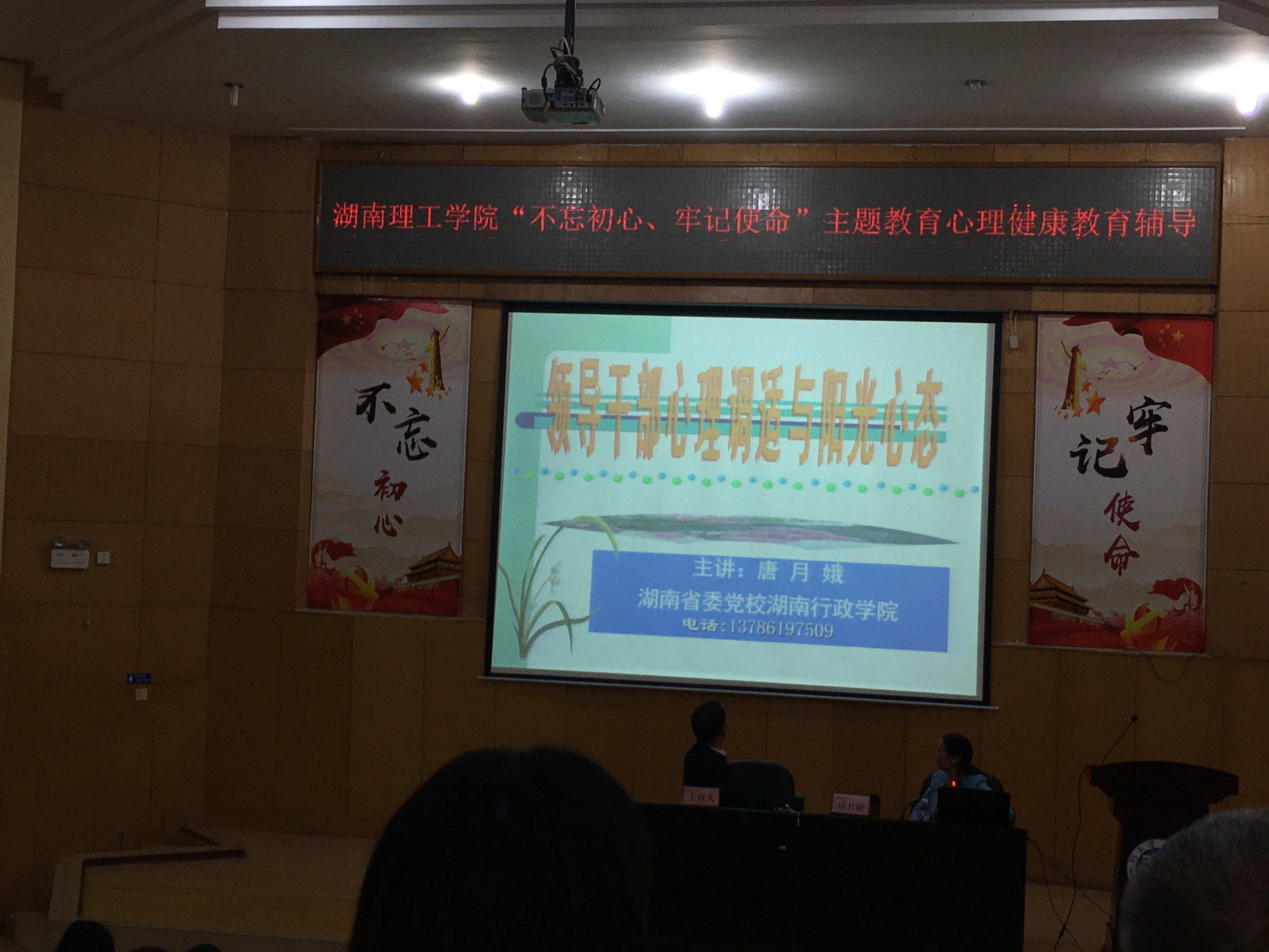 10月23日下午,公司 “不忘初心、牢记使命”主题教育心理健康教育辅导在综合楼学术报告厅举行,邀请中共湖南省委党校唐月娥教授主讲。公司党委副书记邱绍雄主持,公司刘理、刘淳松、王岳斌等同志参加辅导讲座。(刘青姗 供稿)