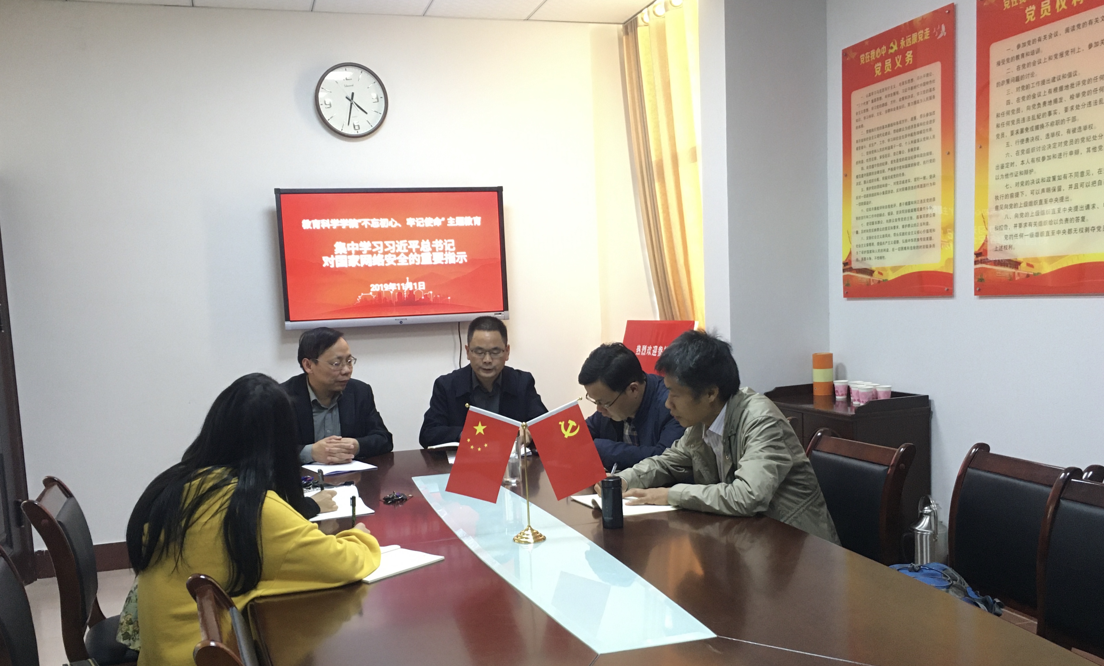 11月1日下午,MK体育“不忘初心、牢记使命”主题教育集中学习在综合楼314会议室进行。此次集中学习的主题为:学习贯彻习近平总书记关于国家网络安全“四个坚持”重要指示精神。公司党总支中心组成员参加学习。