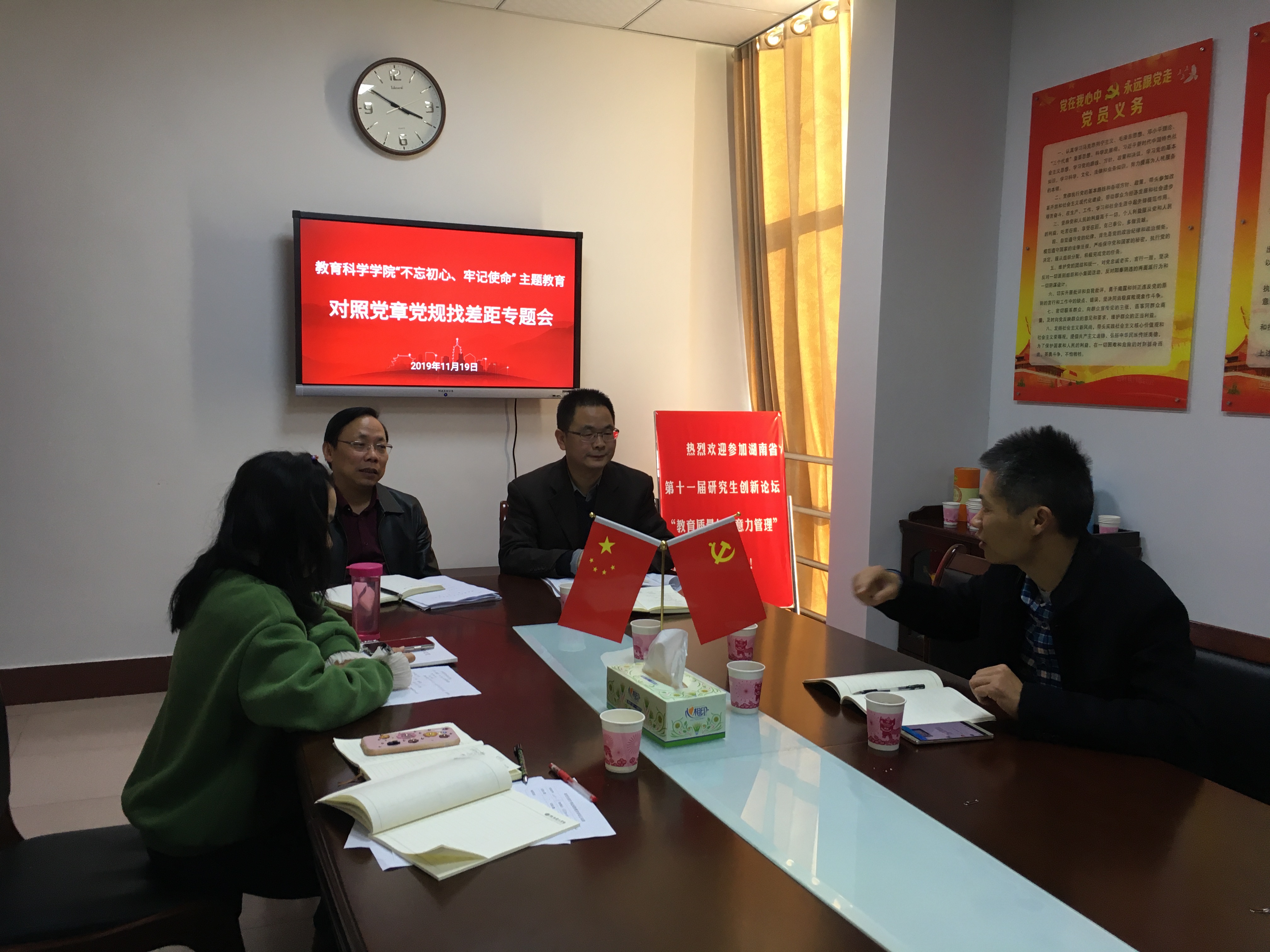 11月19日下午,公司党总支在综合楼314会议室举行“不忘初心、牢记使命”主题教育“对照党章党规找差距”专题会议。全体班子成员、公司咨询专员、党支部书记参会。