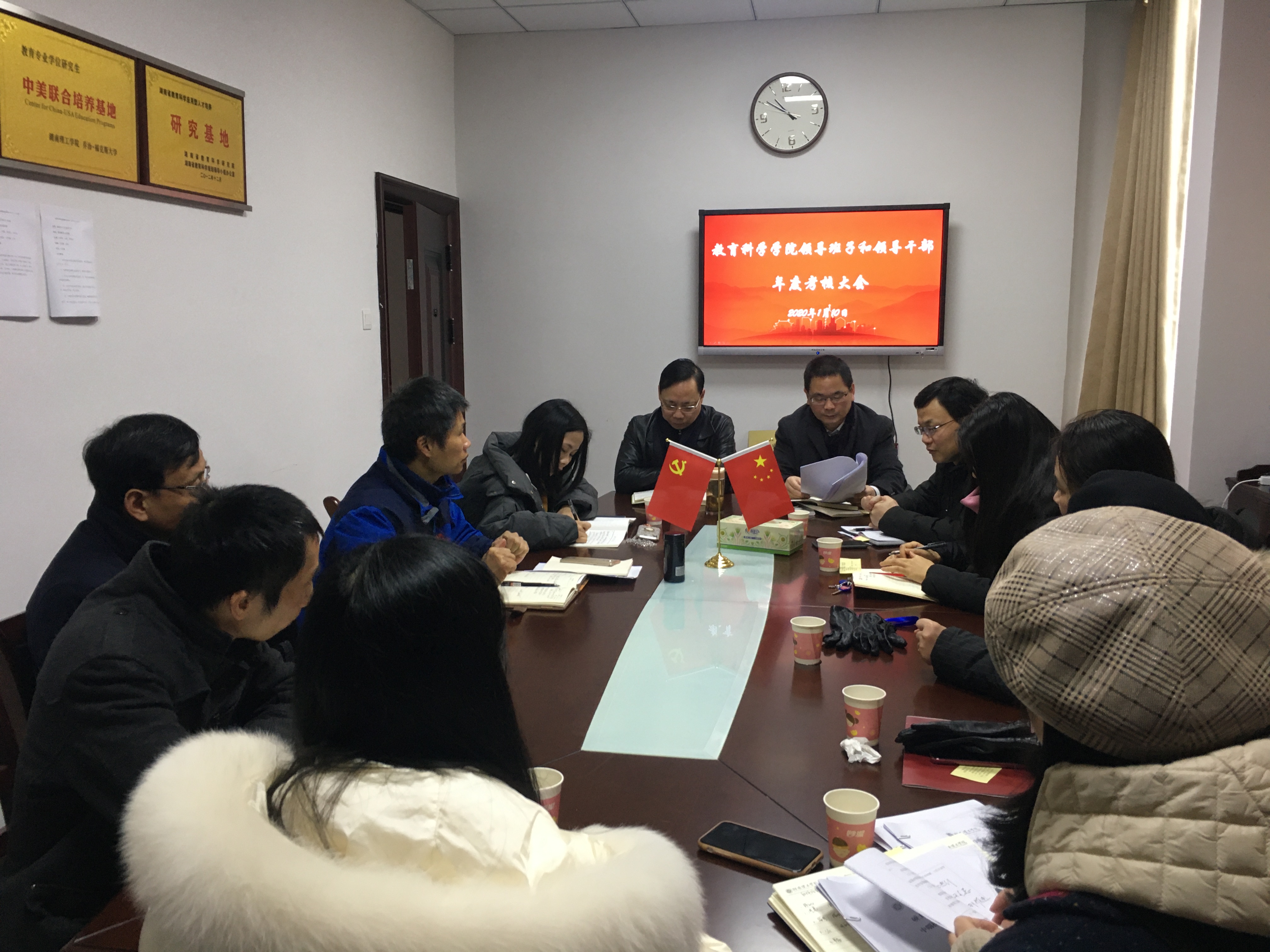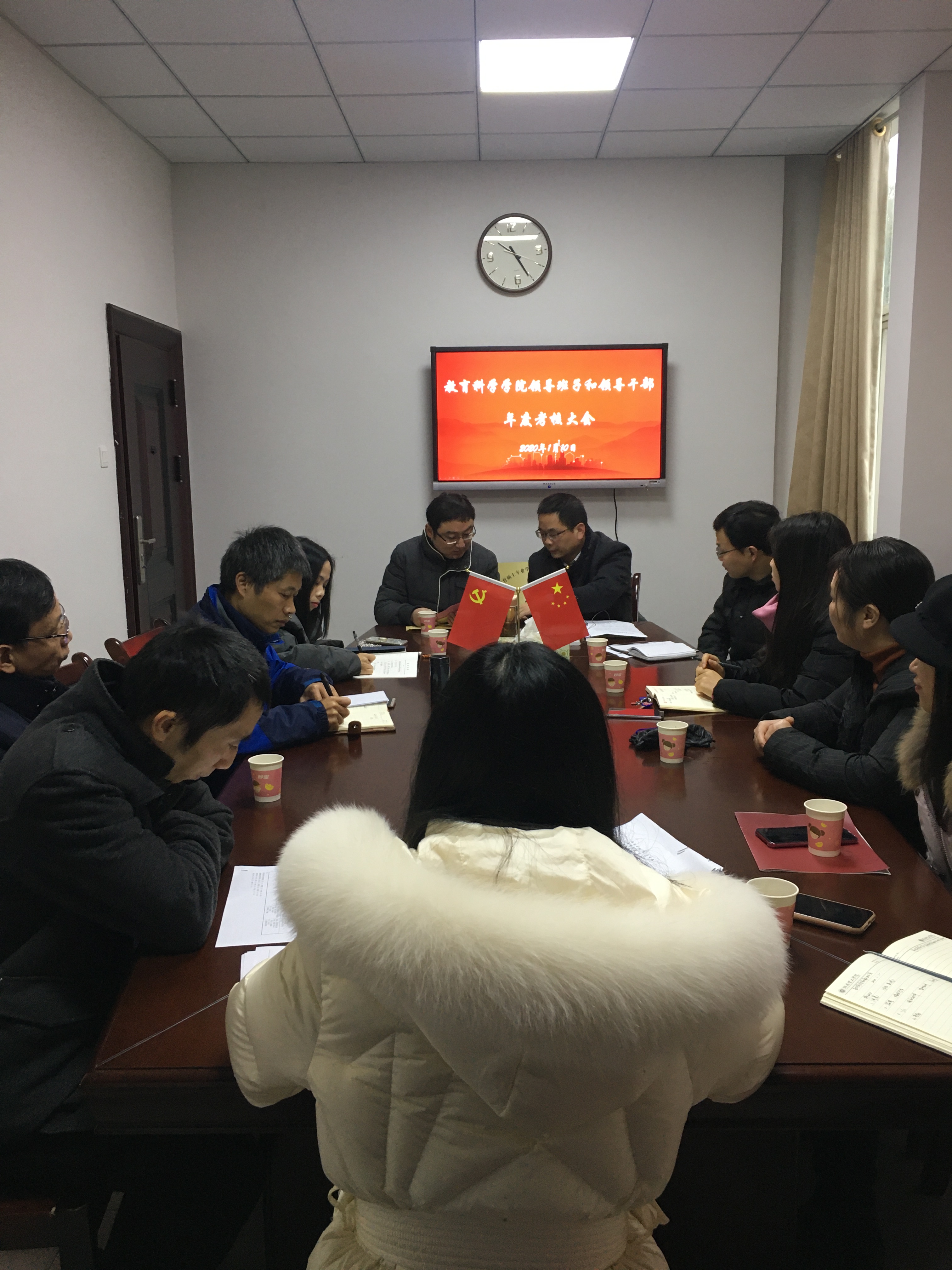 1月10日上午,公司党总支在综合楼314会议室召开领导班子和领导干部年度考核大会,全院教师参会,公司专职组织员蒋智与会。