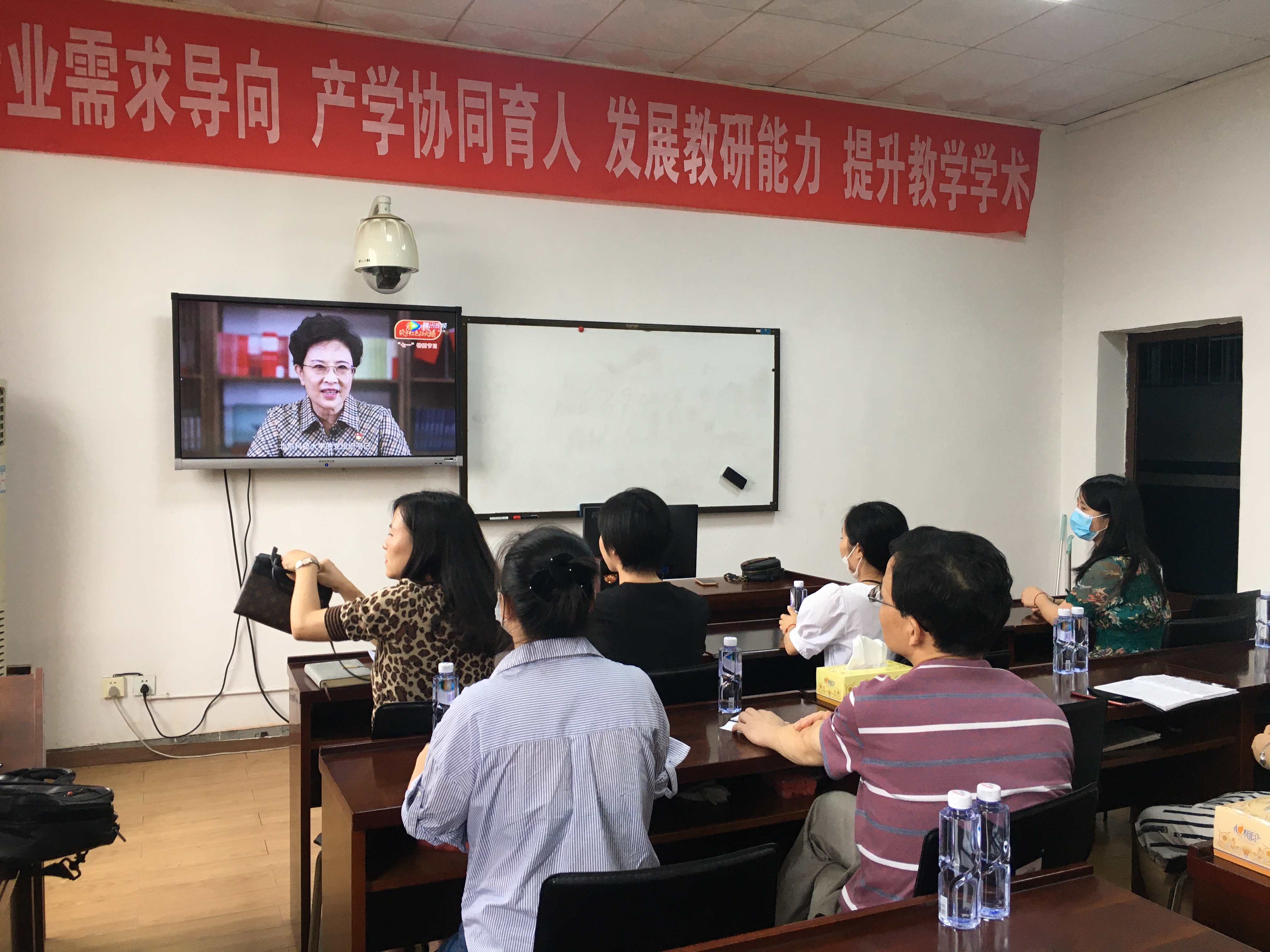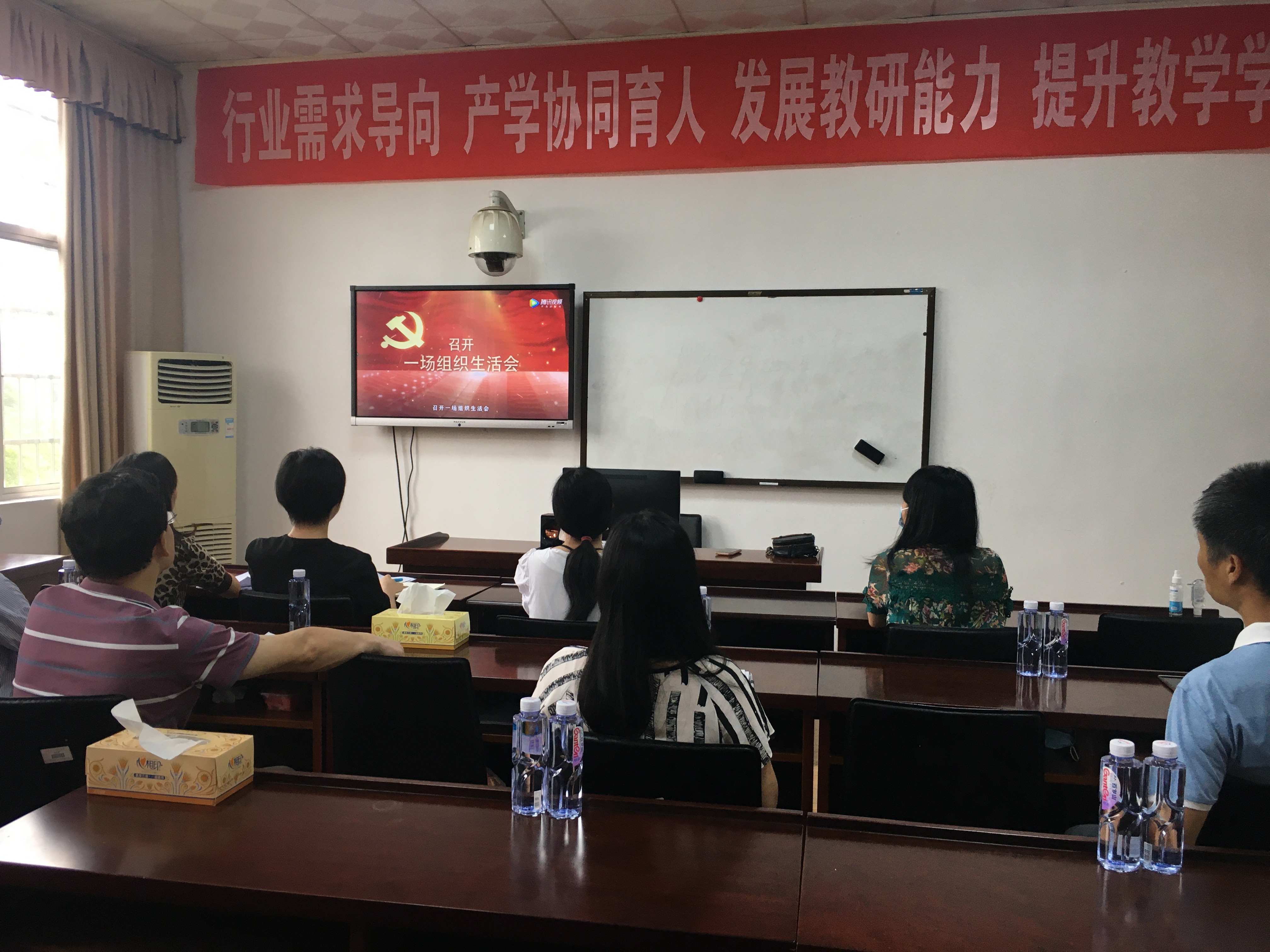 7月1日下午,公司党总支组织师生党员及部分党外教师在1303A教室通过高校思政网集中收看高公司党组织战“疫”示范微党课“七一”专题——“党旗飘扬,筑牢红色防火墙”,共同庆祝中国共产党成立99周年。