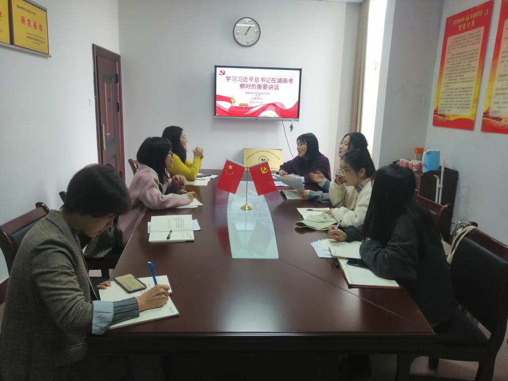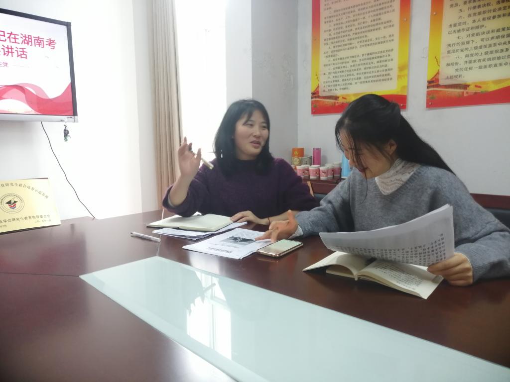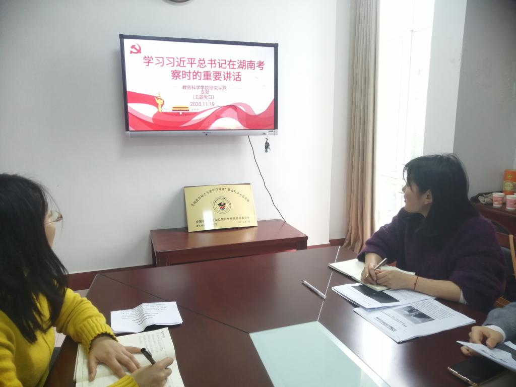 11月19日,MK体育研究生党支部在综合楼314会议室开展“学习习近平总书记考察湖南重要讲话精神”主题党日活动。研究生党支部书记王炜和全体研究生党员参加。
