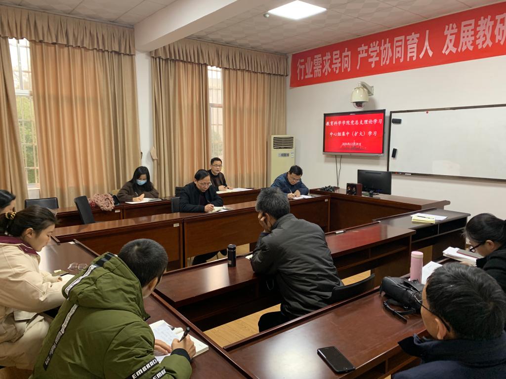12月29日下午,公司党总支理论学习中心组在1教学楼1303A教室进行集中(扩大)学习。公司中心组全体成员、全体共产党员、党外教师参加学习。