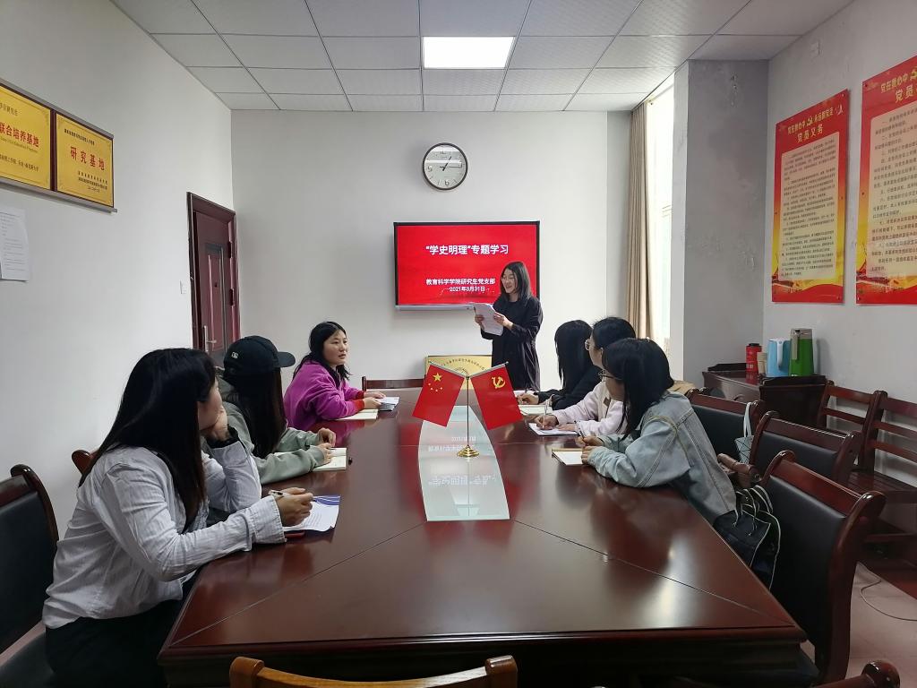3月31日下午,MK体育研究生党支部在综合楼314会议室开展以“学史明理”为主题的党史学习教育。支部书记王炜和全体研究生党员参加学习。