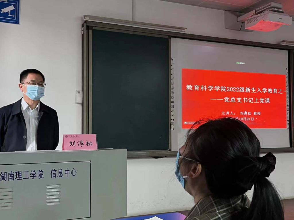 10月21日上午,MK体育在12201教室开展2022级新生入学教育:公司党总支书记刘淳松教授给全体新生讲党课。