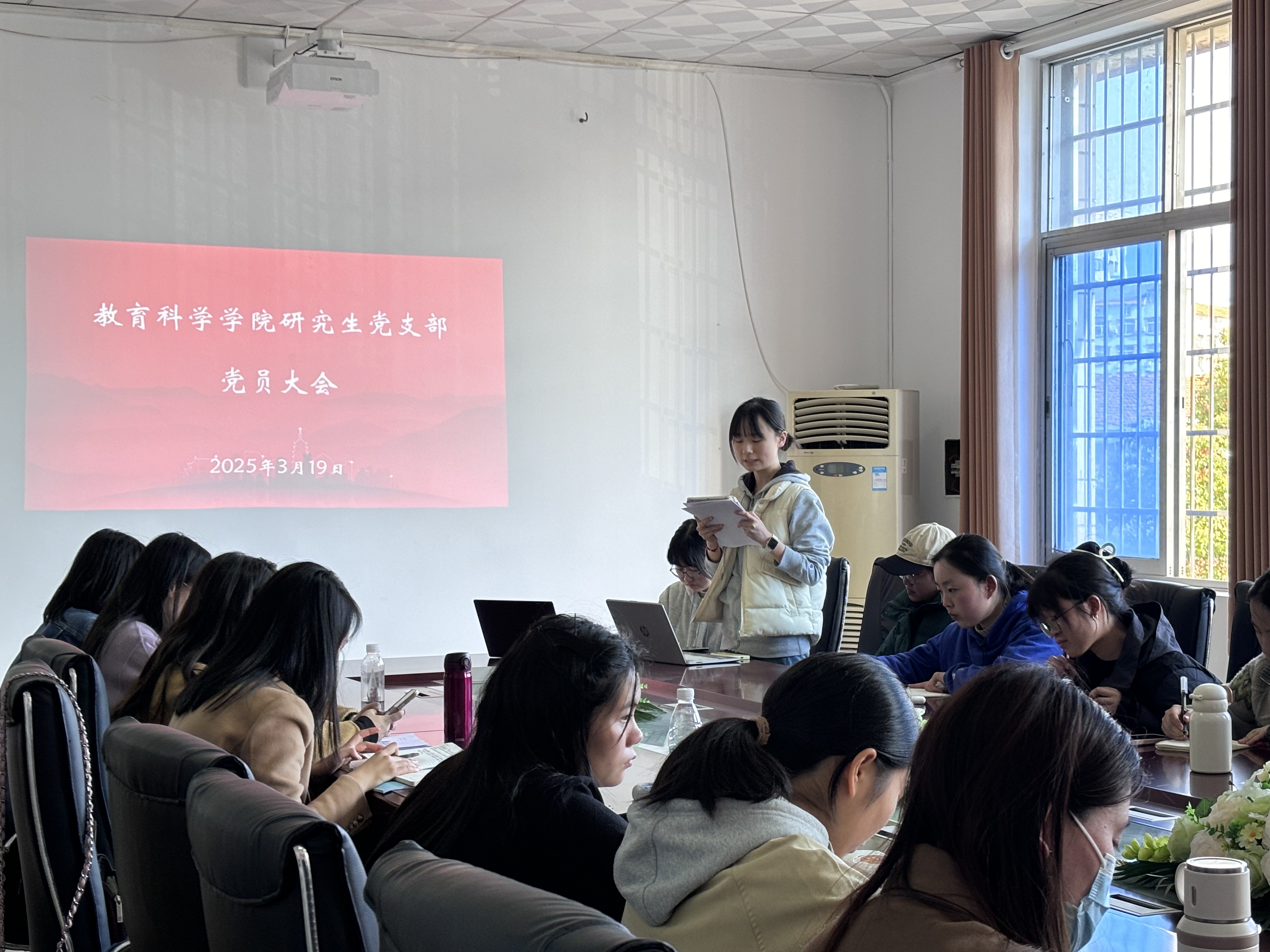 3月19日,MK体育研究生党支部在1305会议室组织专题会议,学习习近平总书记关于教育强国重要论述,观看《青春雷锋》影片。研究生党支部书记王炜主持,全体研究生党员参会。