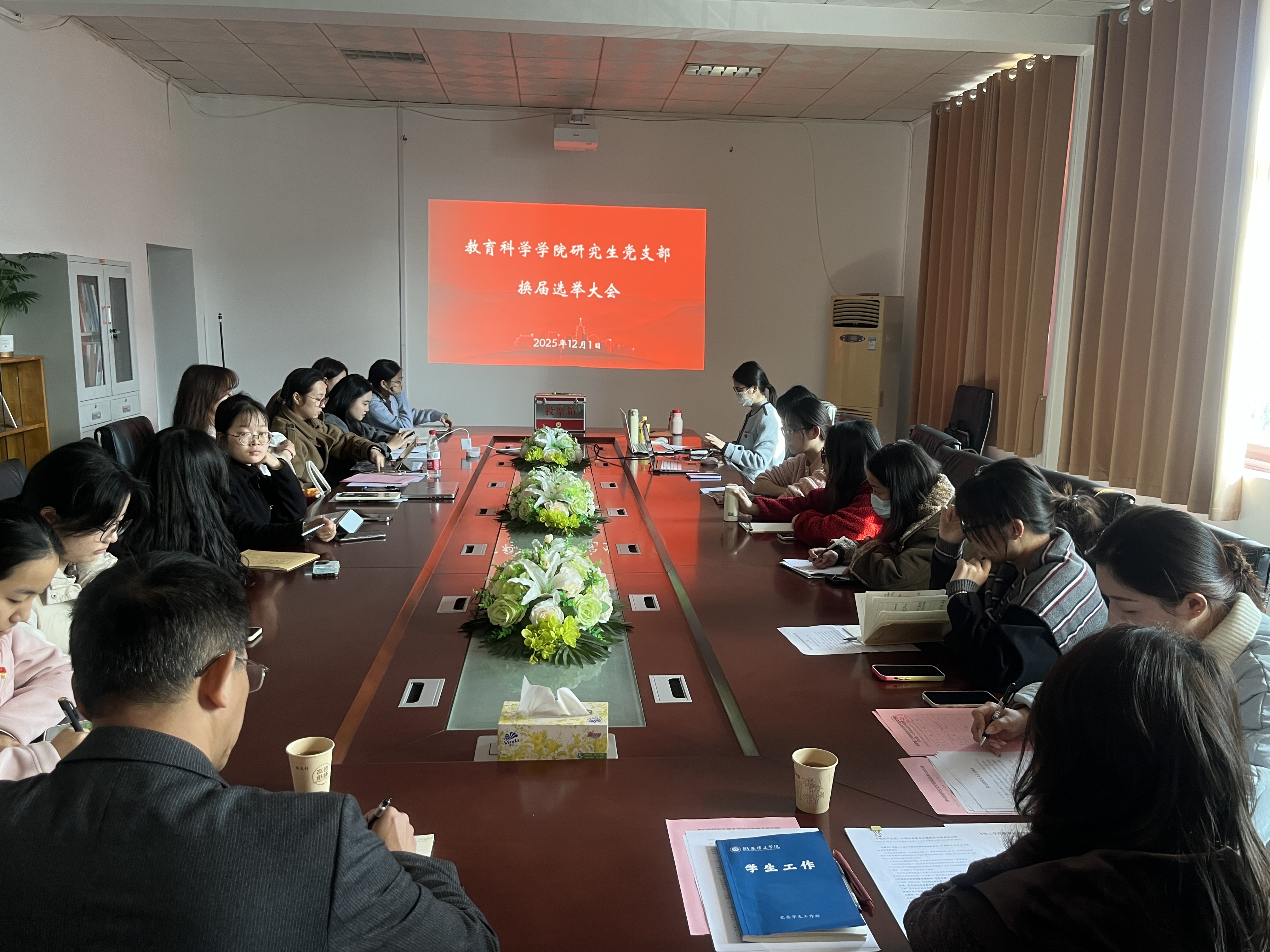 根据上级有关规定与要求,我院研究生党支部于12月1日下午在1号教学楼1305会议室召开换届选举大会,选举产生新一届支部委员会。公司党总支书记钟坚全程与会指导,党总支组织员王炜老师和全体研究生党员参加会议,研究生党员刘瑾主持会议。