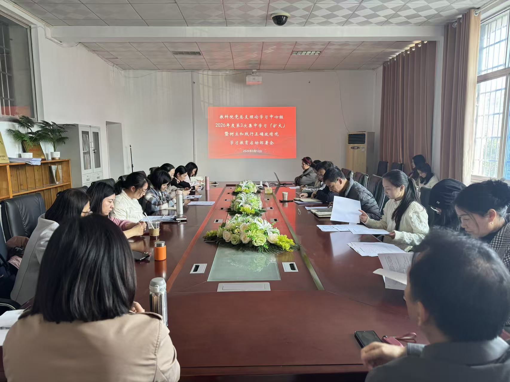 3月12日下午,公司在1号教学楼1305会议室召开党总支理论学习中心组2026年第3次集中学习(扩大)暨部署启动树立和践行正确政绩观学习教育会议。公司班子成员及全体师生党员参加。