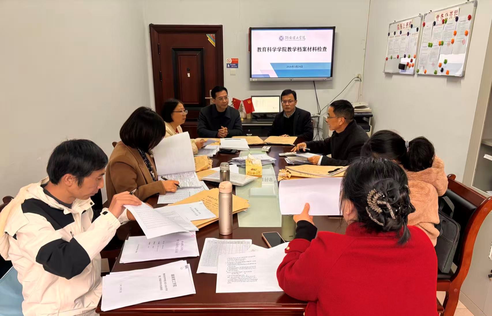 3月24日,公司在综合楼312组织开展本科教学档案专项督导检查。公司领导钟坚、彭阳红、隋幸华亲临指导,全体教学督导成员及两个教研部主任共同参与检查。