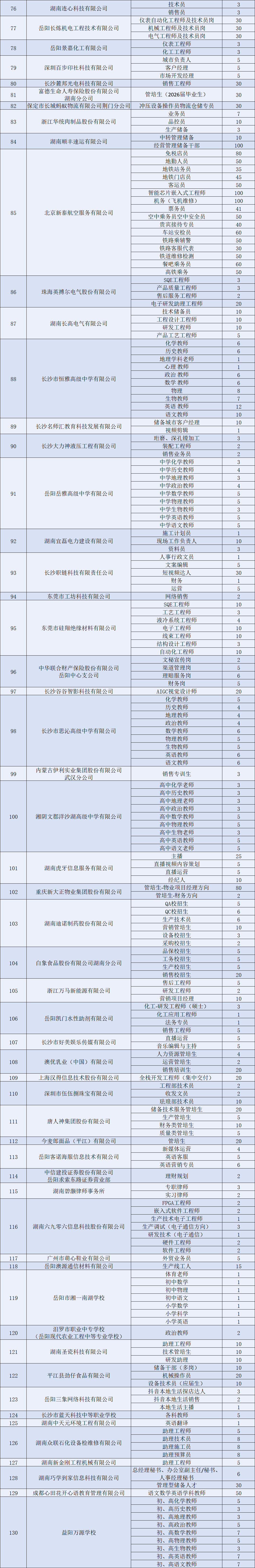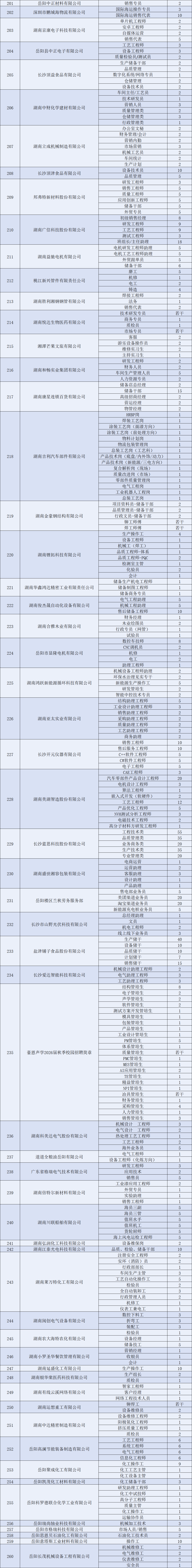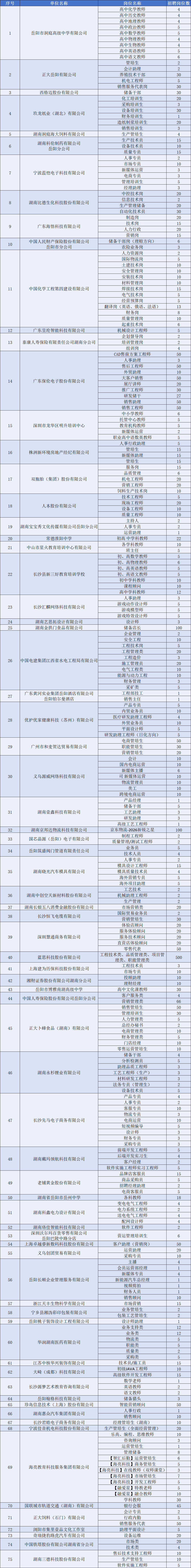 火热来袭 | 湘北地区2026届毕业生秋季供需见面会参会单位及招聘岗位表
