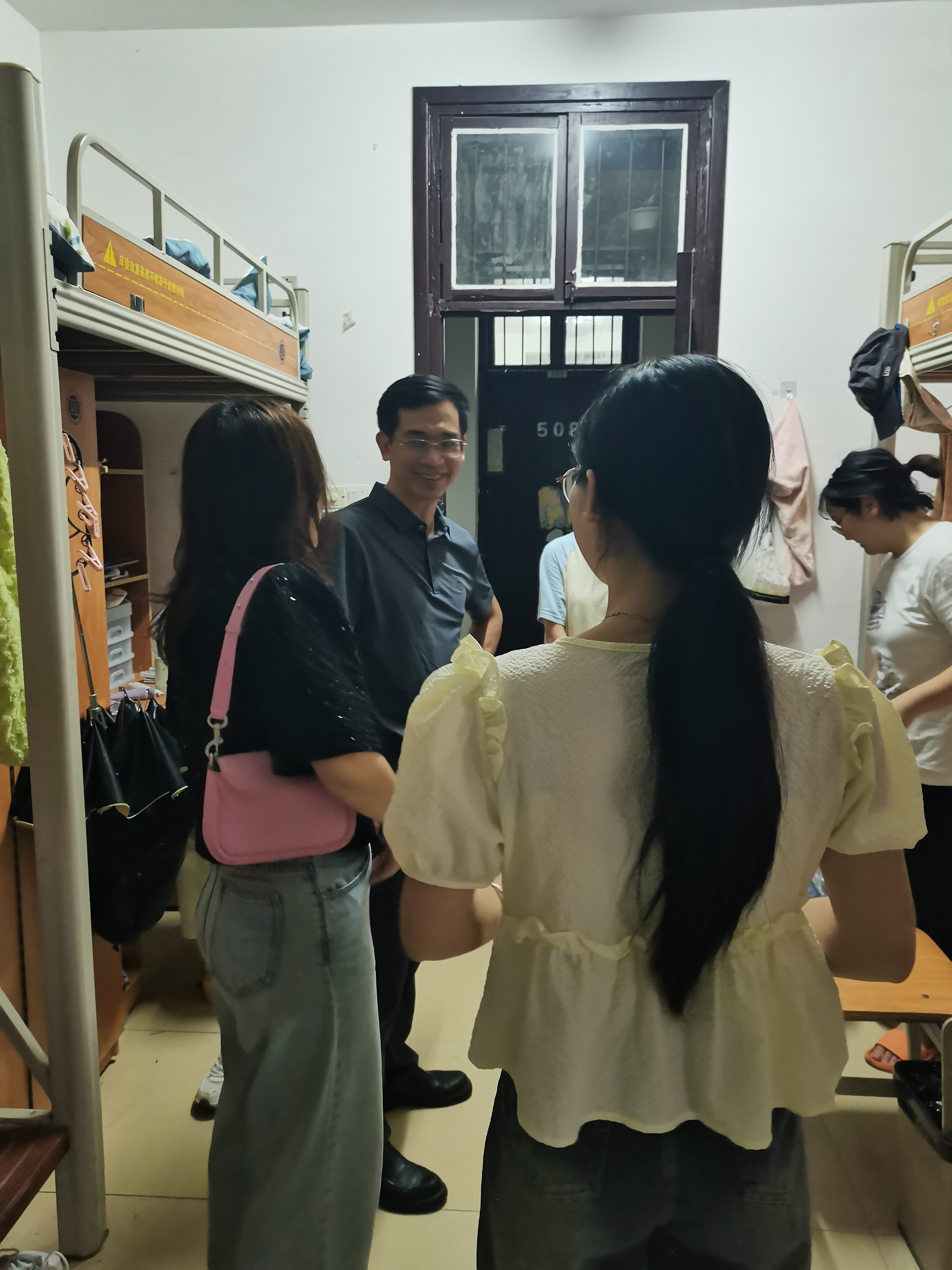 9月9日晚上,公司党总支书记钟坚和研究生党支部书记王炜走访新生寝室,了解新生的生活环境、适应情况和学习状态。