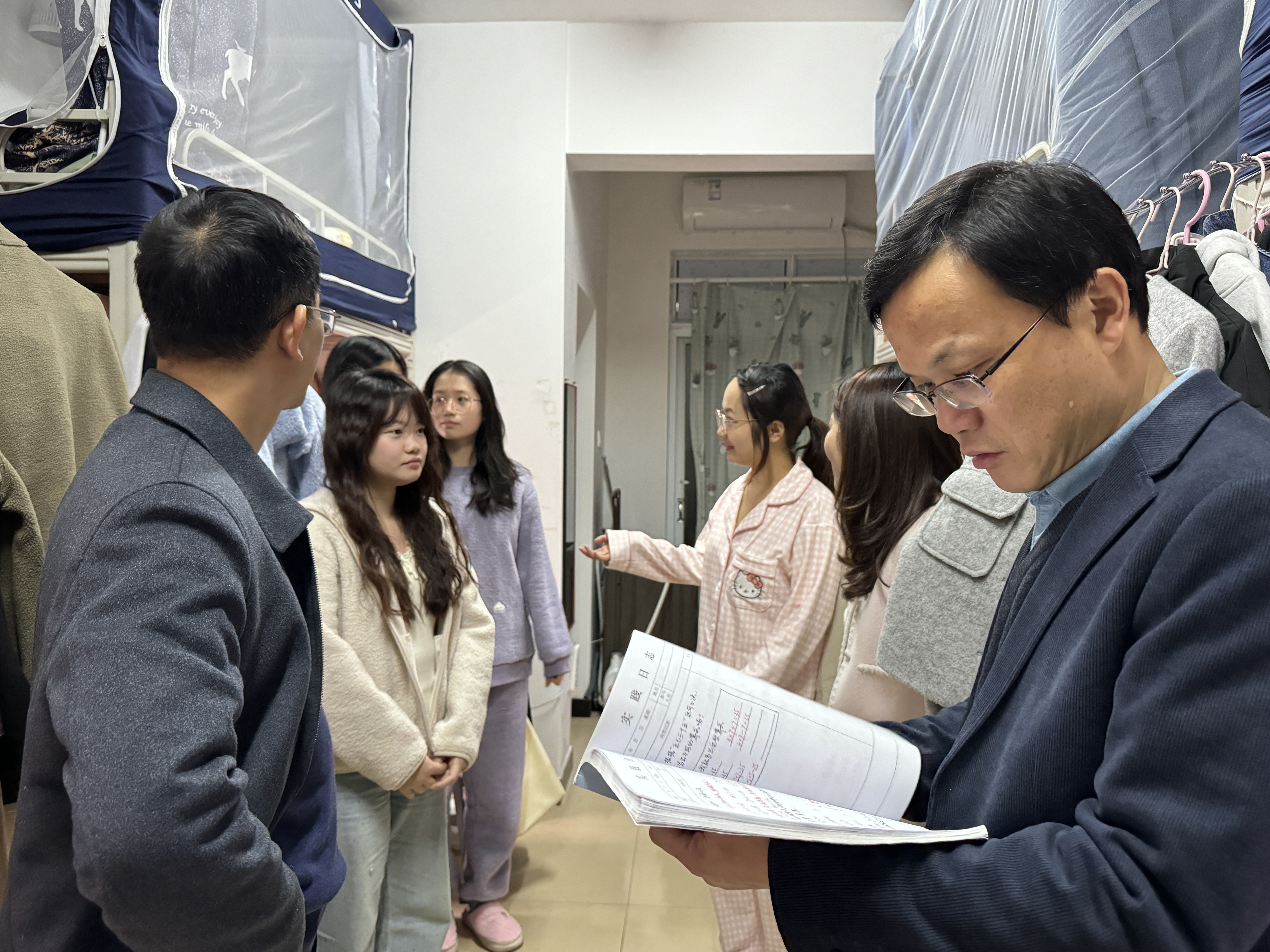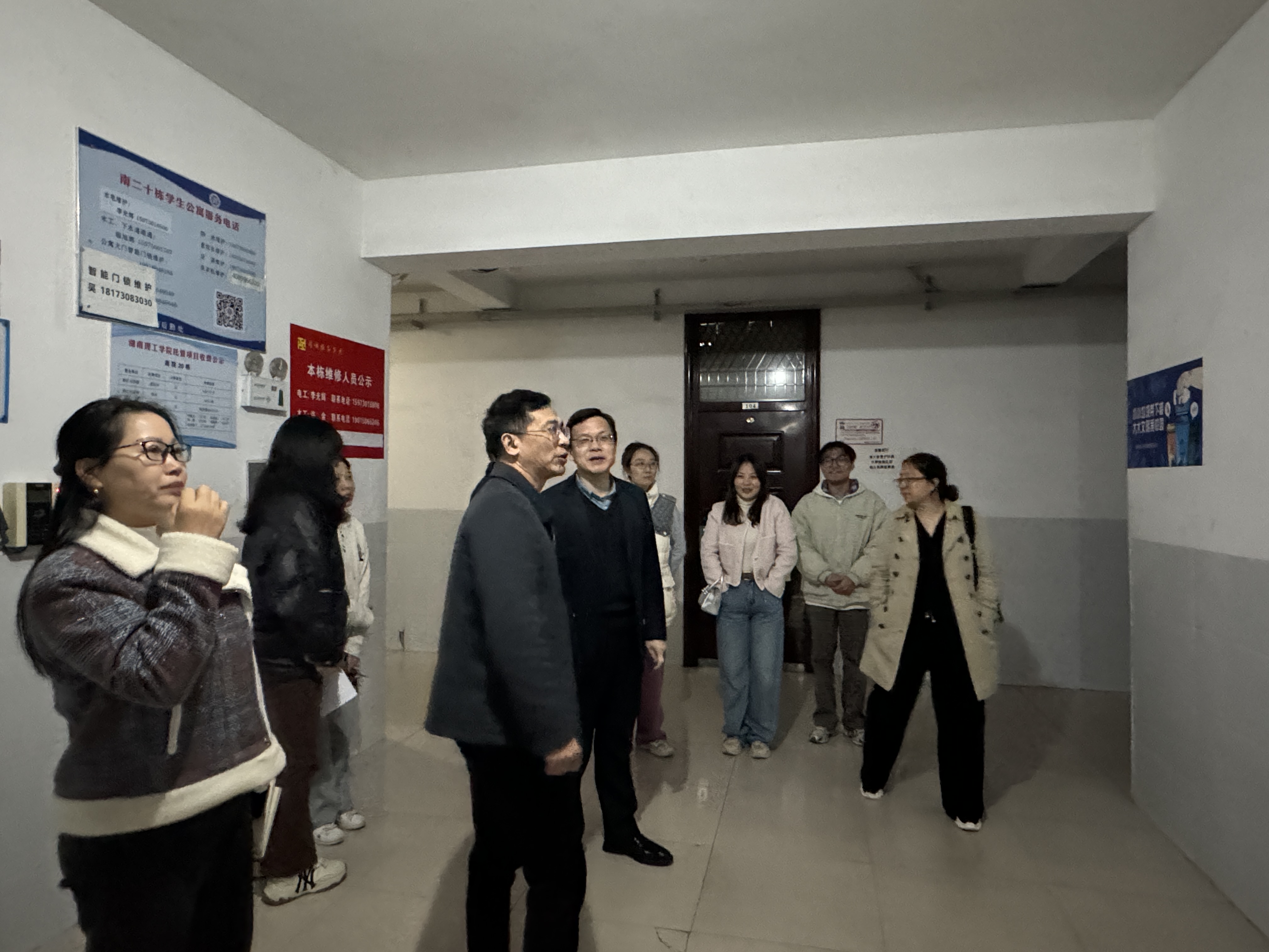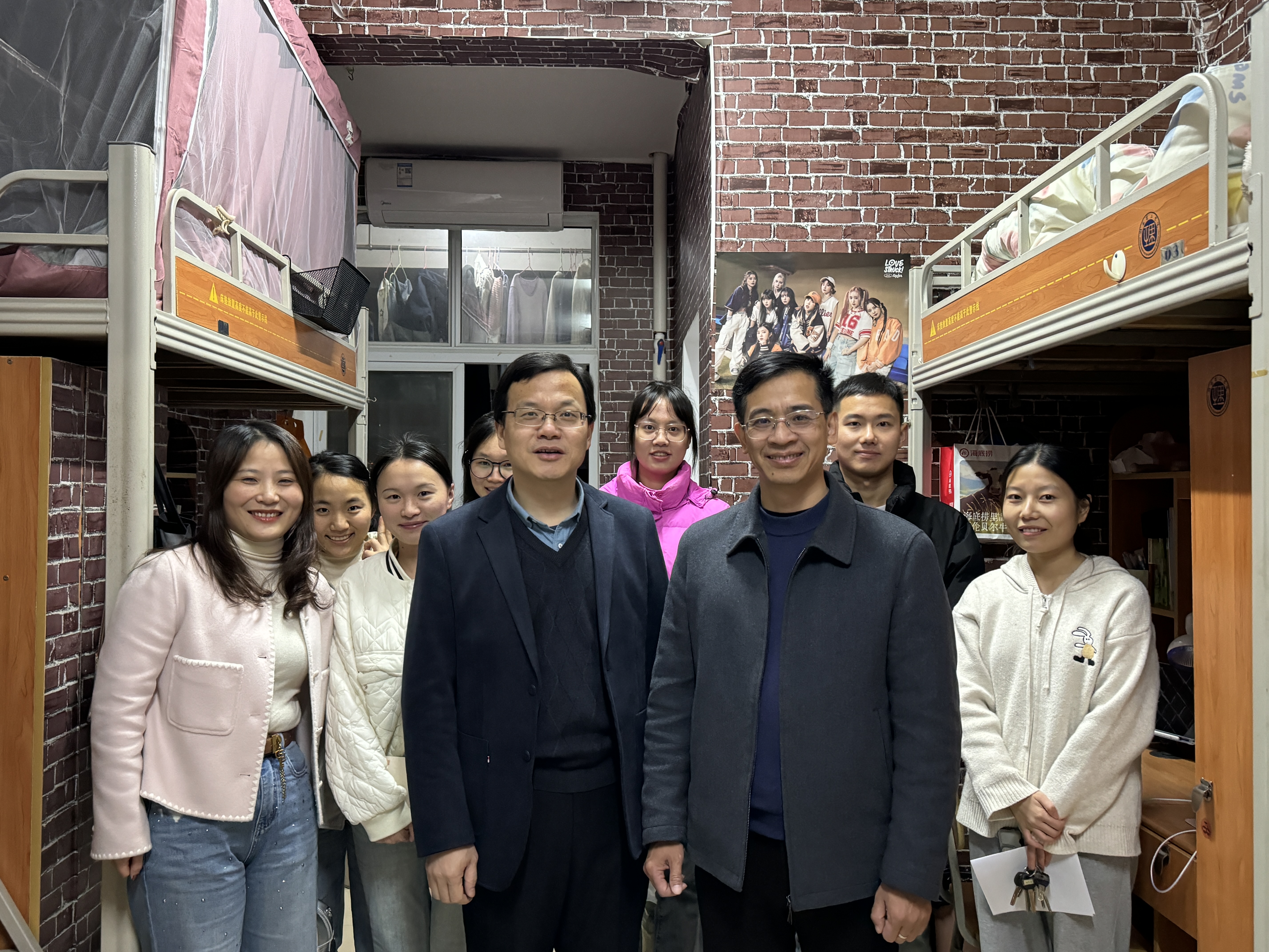 11月27日晚,MK体育全体党政班子成员钟坚、彭阳红、隋幸华、赖颖慧、洪冬美和研究生党支部书记王炜一行6人遍访公司研究生宿舍,排查安全隐患,了解研究生学习生活状况。