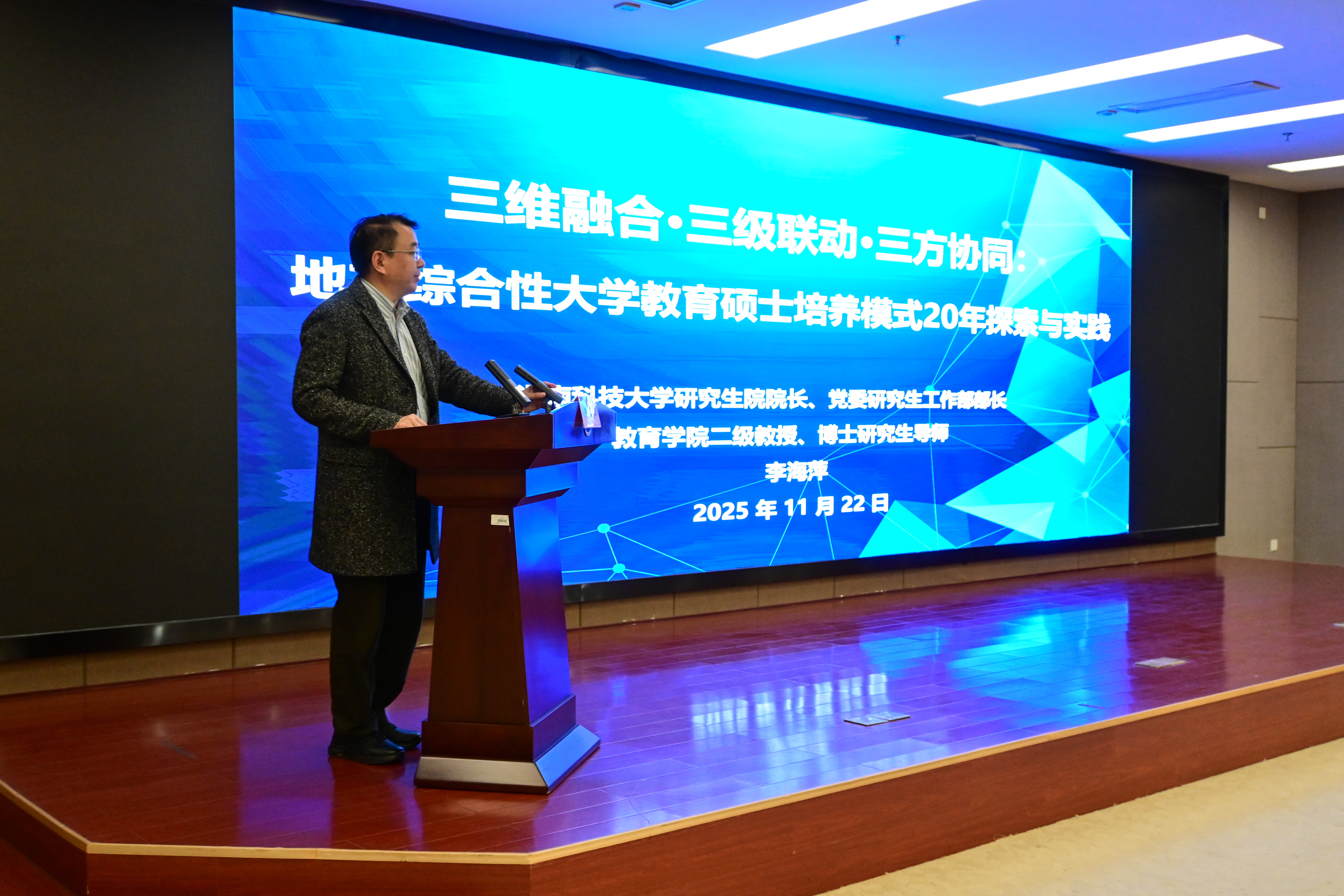 主旨报告阶段,湖南科技大学研究生院经理、二级教授李海萍和益阳市南县实验公司教育集团党总支书记、正高级教师孟玲带来了高水平学术分享。孟玲以《在“实”里深耕,向“光”处前行——教学“时光”之实践、感悟与追求》为题,结合一线教学经验,阐释教育家精神在基础教育实践中的落地路径。李海萍以《三维融合 三级联动 三方协同:地方综合性大学教育硕士培养模式20年探索与实践》为题,展示了综合性大学以教育家精神为引领创新研究生人才培养模式的生动实践。专家们的报告内容丰富、视角新颖,为与会研究生提供了宝贵的学术启发。