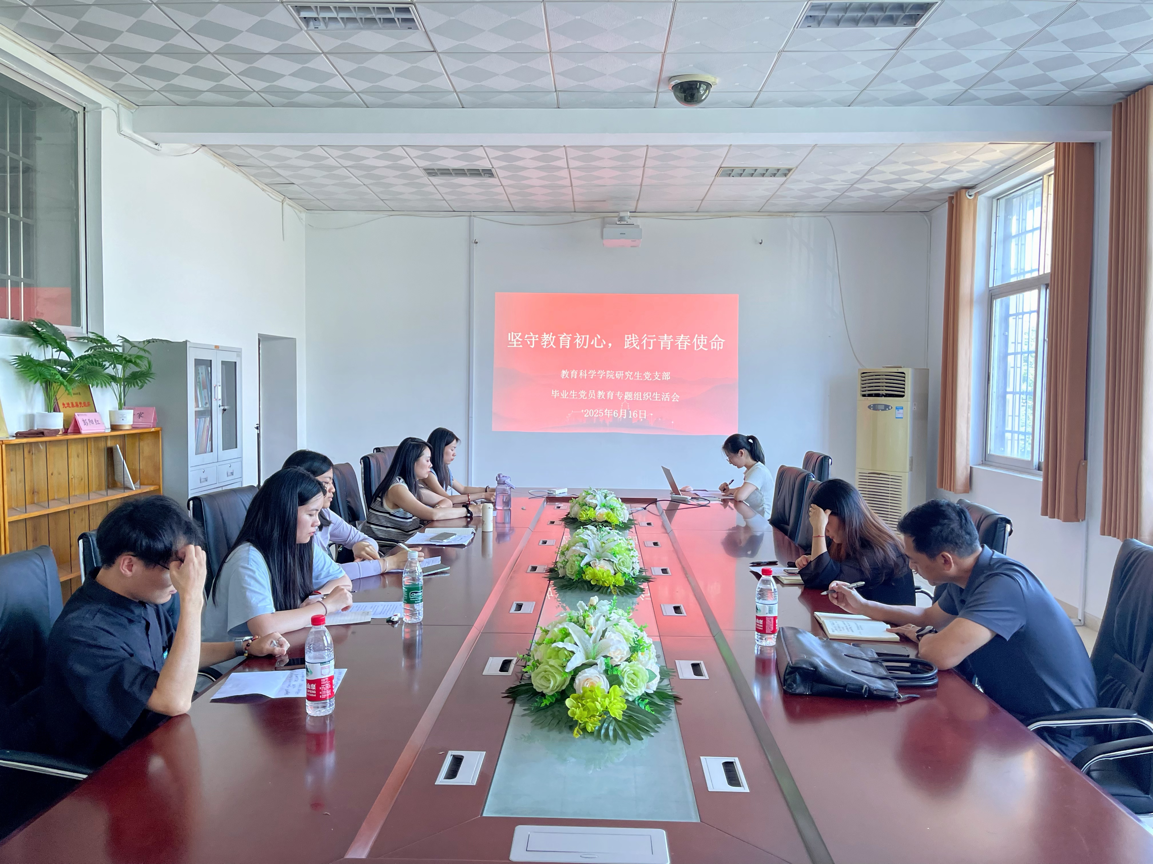 2025年6月16日下午,公司研究生党支部在综合楼312会议室召开“坚守教育初心  践行青春使命”为主题的毕业生党员教育专题组织生活会。公司党总支书记钟坚研究生党支部书记王炜出席,全体毕业生党员参会,会议由李思主持。