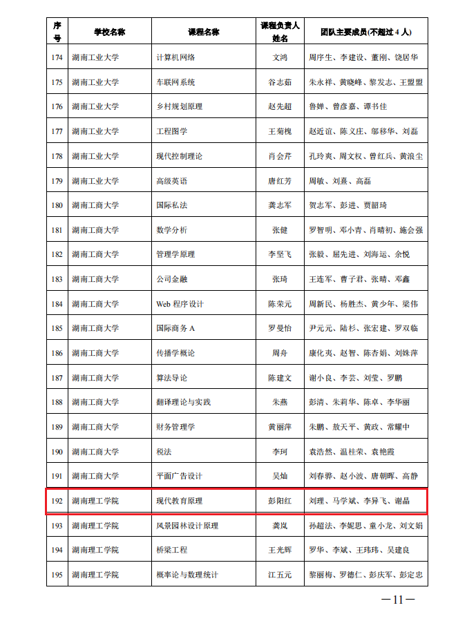 近日,湖南省教育厅公布了2020年省级线下一流本科课程认定结果(湘教通〔2020〕322号)。经公司申报、省教育厅组织评审,公司彭阳红老师负责的《现代教育原理》课程被认定为2020年“湖南省省级线下一流本科课程”。(教科院/黄灿)