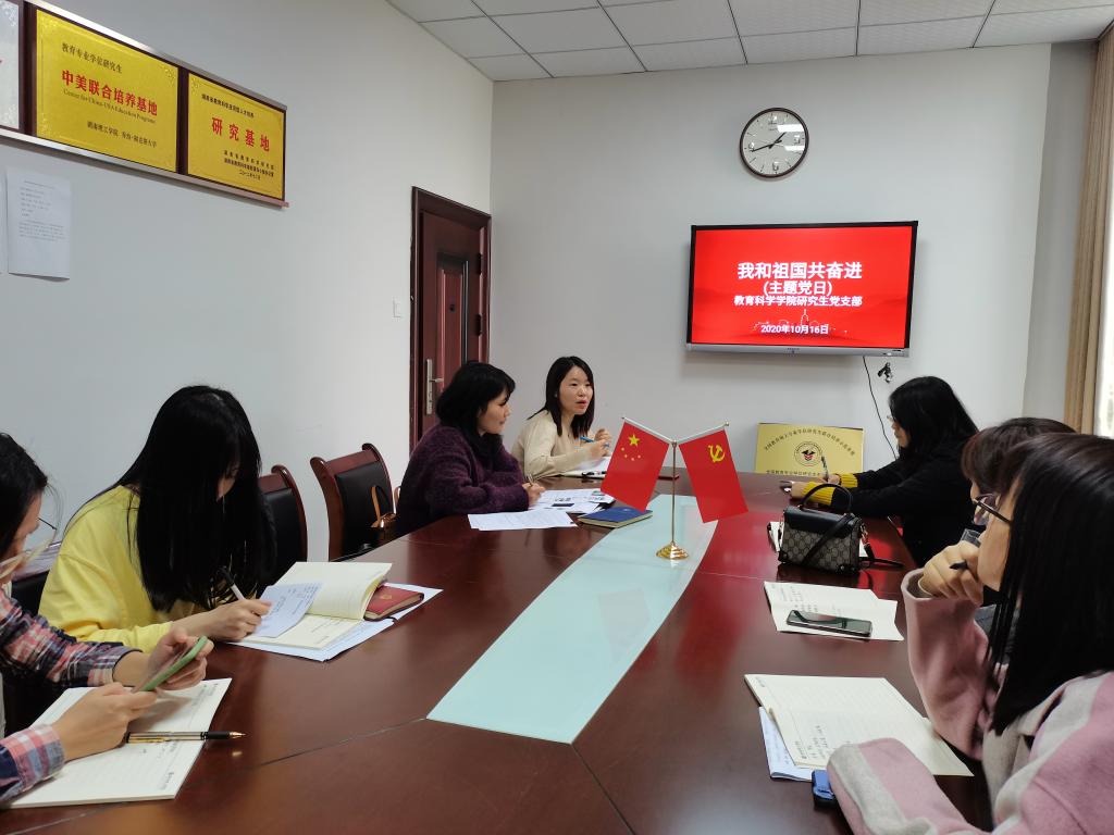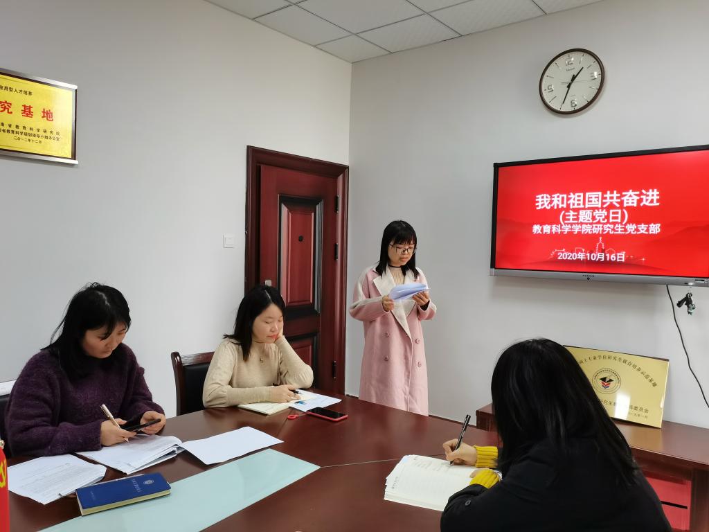 根据公司党委组织部的指示精神和公司党总支会议要求,MK体育研究生党支部于10月16日在综合楼314会议室开展“我和祖国共奋进”主题党日活动。研究生党支部书记王炜和全体研究生党员参加。