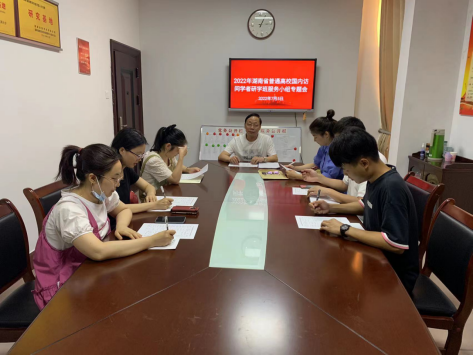 7月5日晚上7点,2022年湖南省普通高校国内访问学者研学实践班项目服务小组专题工作会在综合楼314教室召开。项目负责人MK体育经理刘理主持会议,项目组核心成员罗溢枫、王炜老师以及部分研究生志愿者参加。