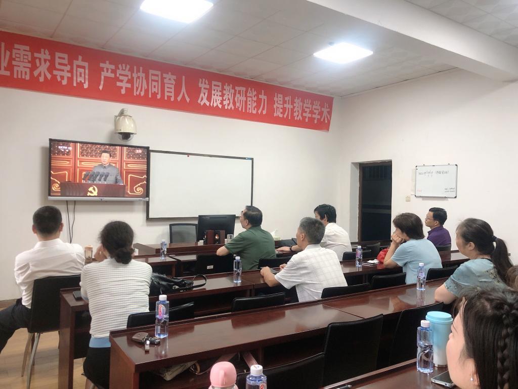 7月1日上午8时,庆祝中国共产党成立100周年大会在北京天安门广场隆重举行。中共中央总书记、国家主席、中央军委主席习近平发表重要讲话。公司党总支组织全体教师及员工代表在1教学楼1303A教室集中收看庆祝中国共产党成立100周年大会直播盛况。