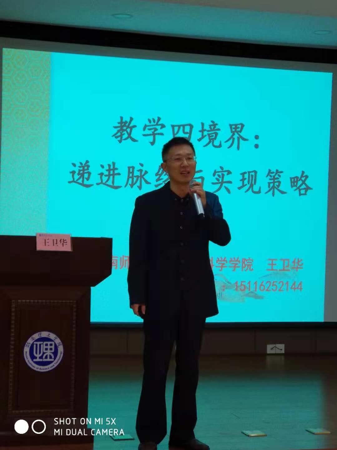王卫华教授以《教育四境界:递进脉络与实现策略》为主题,提出教学分为适应教学、有效教学、高效教学和魅力教学四种境界。四种境界之间有着内在的递进脉络:在教学价值上,由注重技能向注重全人发展;在教学过程上,由遵循计划向创造生成发展;在教学动力上,由外在压力向内部驱动发展;在教学风格上,由掩饰个性向张扬个性发展;在教学结果上,由关注员工向关注师生发展。王卫华认为,要实现教学境界的顺利提升,除了要有合适的社会氛围及公司教学管理制度作保障外,最重要的是要发挥教师的主体自觉性。