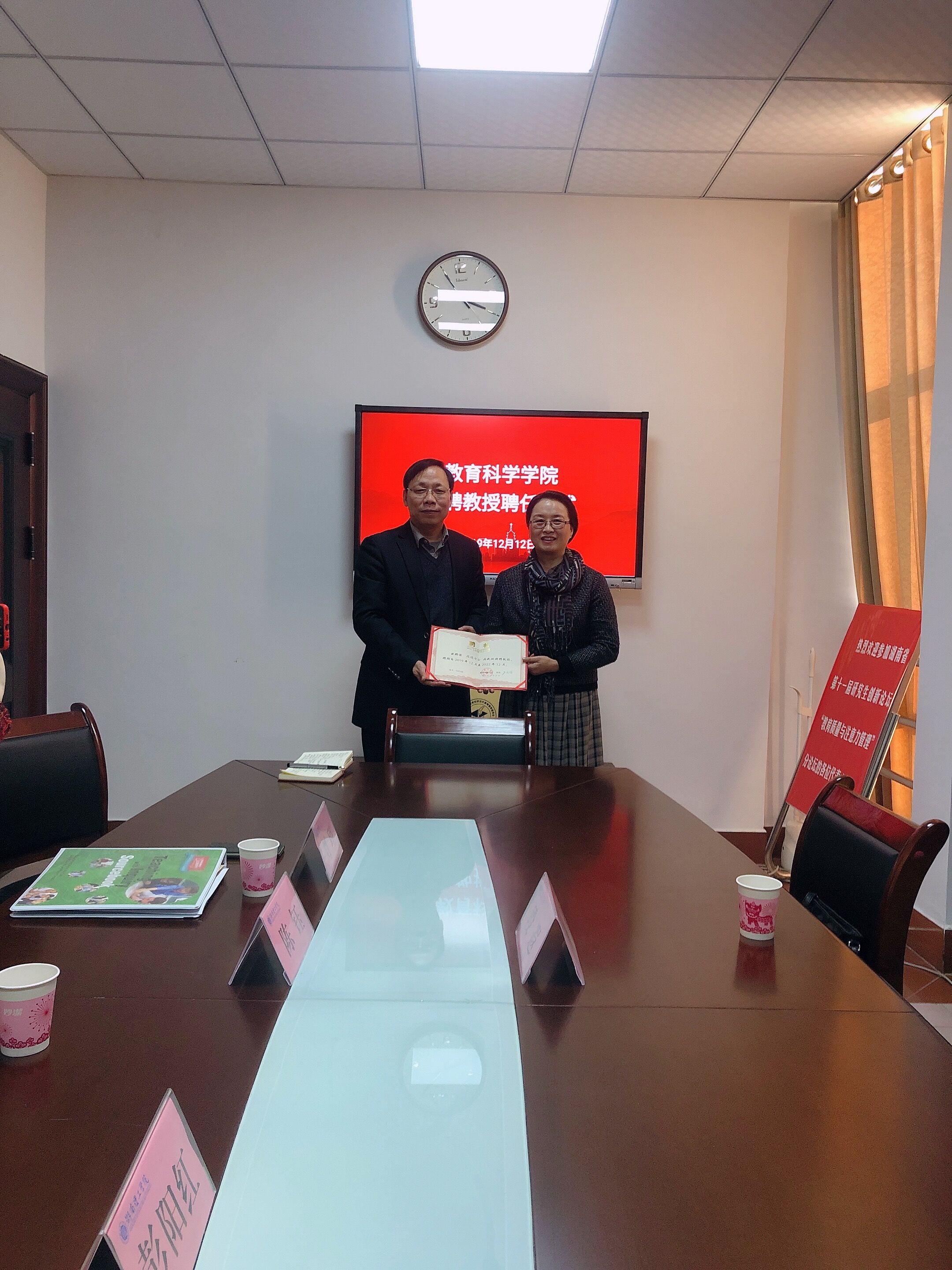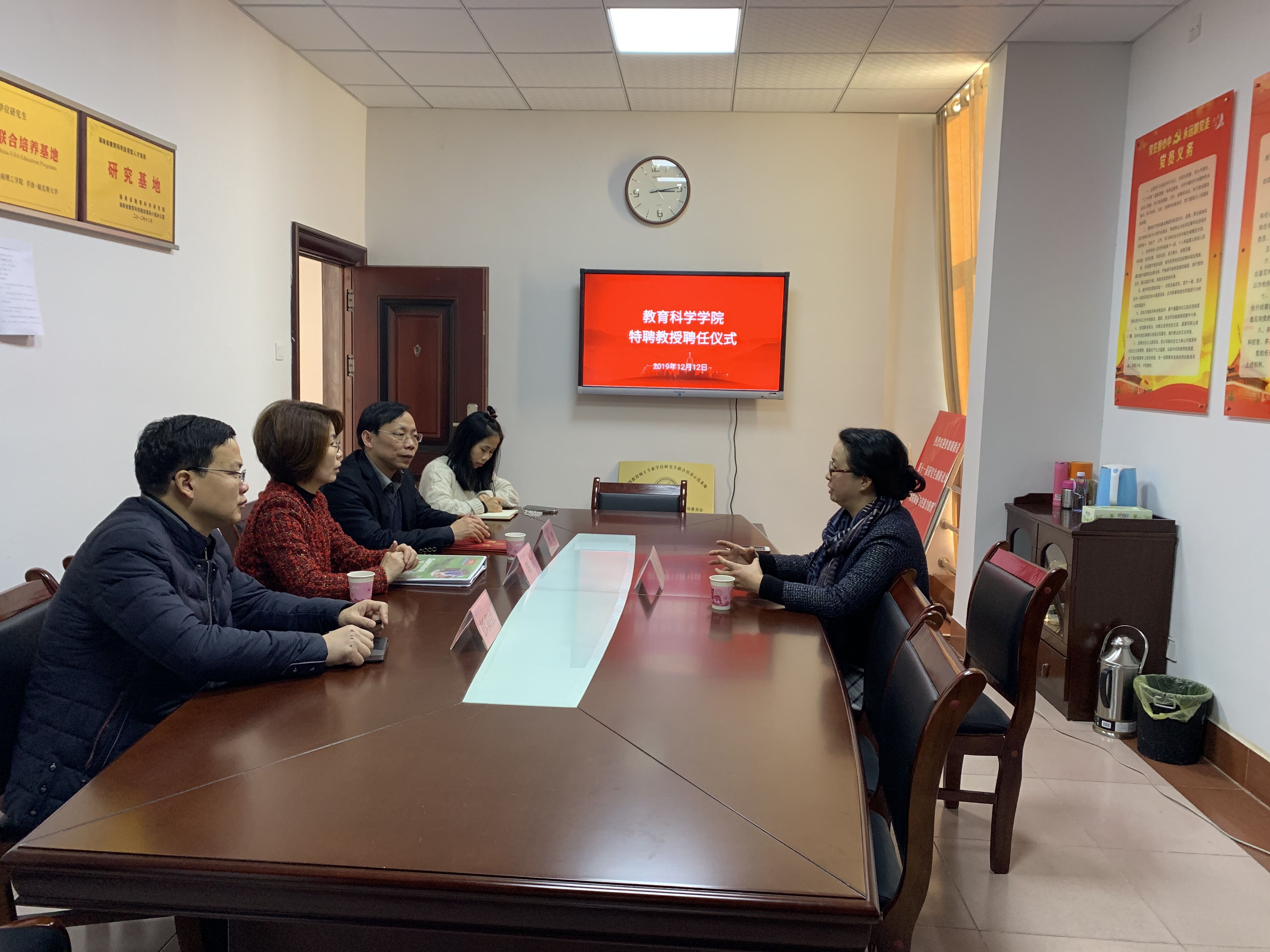 2019年12月12日,美国克拉克森大学教育系中文教学硕士项目主任、教授,北美《中文教学研究》杂志执行主编段遐到访MK体育。副董事长张国云、国际交流处处长陈钰、教科院经理刘理、党总支书记刘淳松、副经理彭阳红热情接待了段遐。双方围绕教育硕士中外联合培养进行商讨,并就高素质国际化人才培养及中小学教育管理人员培训对接项目、开放式办学、课程引进等相关事宜进行交流。教科院聘请段遐为特聘教授,并现场颁发聘书。