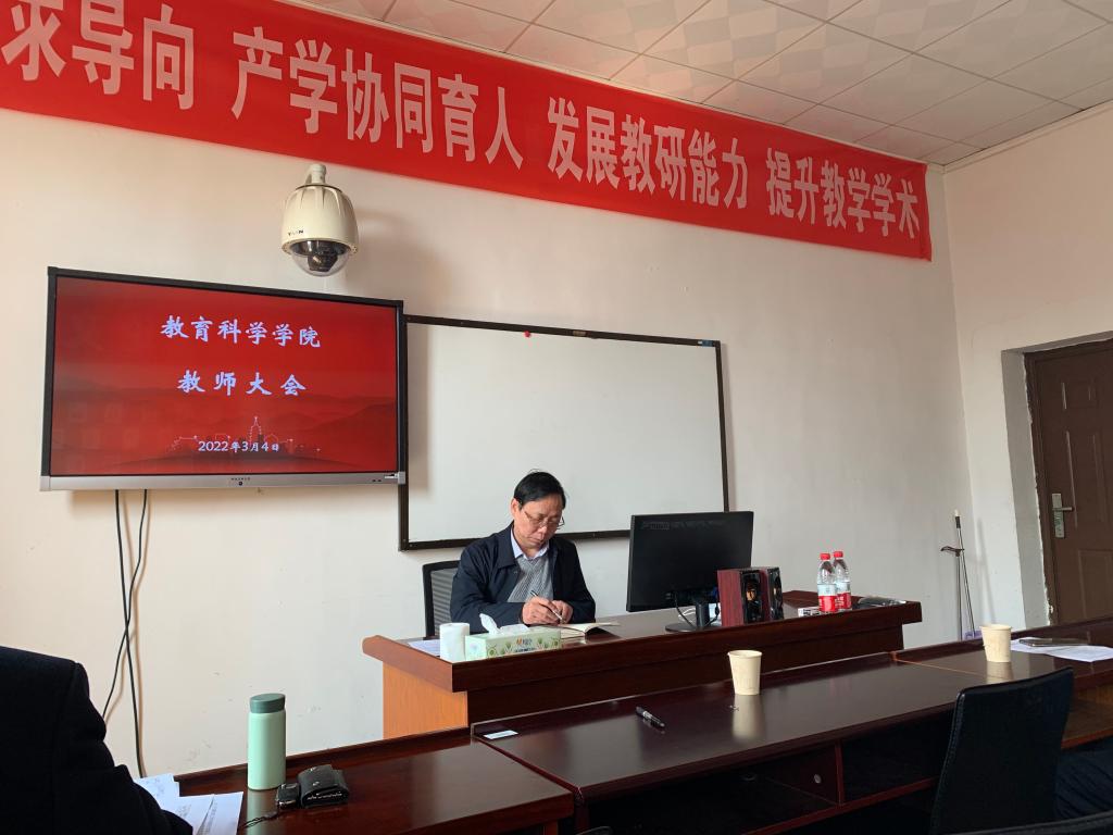 刘理对公司本学期的几项重点工作任务进行部署安排。他提出,公司发展到今天,已走到了一个重要关口,公司今年将围绕立德树人根本和公司中心工作开展三项重点工作:一是完善内部治理架构,组建三个教研室和教育硕士教研中心,教师支部和研究生支部人员配备到位,成立了分工会;二是抓住机遇申报小学教育本科专业,奠定公司发展专业基础;三是组建院校研究中心,狠抓科研创新团队建设,提升创新能力。希望全体教师协同努力,以政治建设为统领,以党建工作为引领,共同翻开公司发展新篇章。(供稿:王炜 )