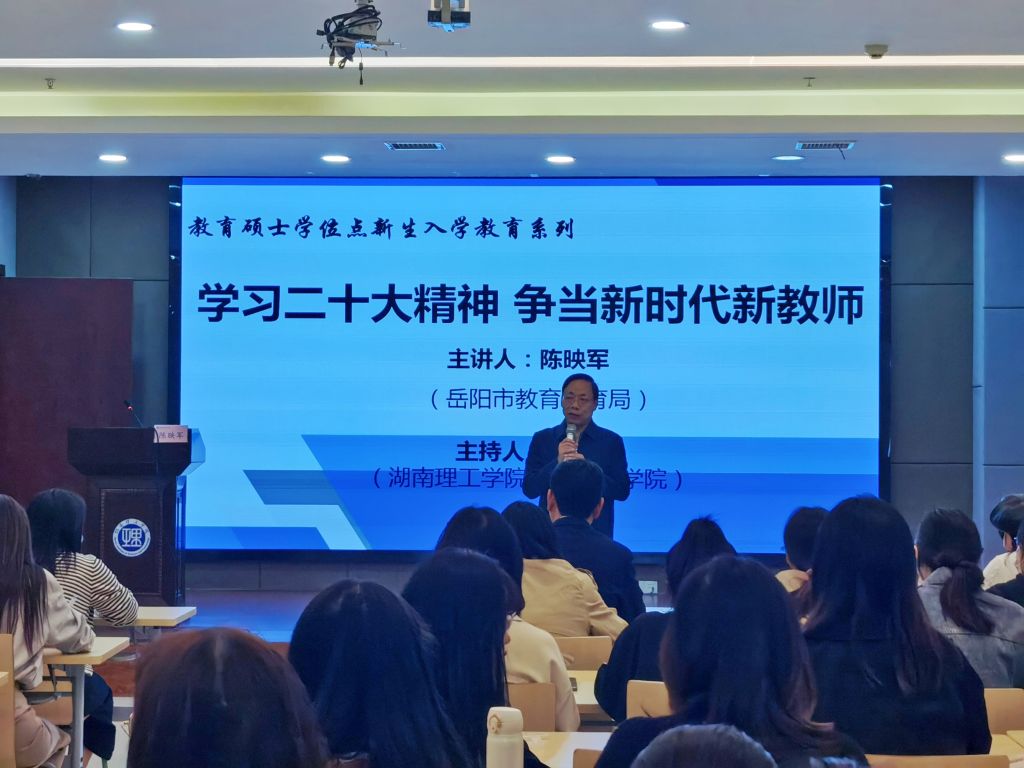 11月5日下午,公司教育硕士点新生入学教育在新图书馆学术报告厅举行,本次入学教育主题是“学习二十大精神 争当新时代新教师”,由岳阳市教育体育局基础教育科科长陈映军老师主讲,公司教育硕士学位点负责人、MK体育经理刘理老师主持。MK体育部分教师,以及来自全校八个学科领域的2022级全体教育硕士专业学位研究生共160人参加。