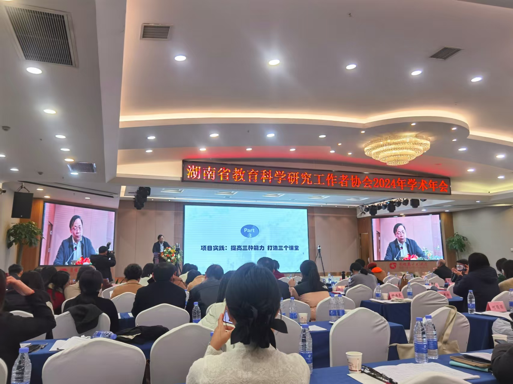 2024年12月10日,湖南省教育科研工作者协会2024年学术年会于长沙召开,公司刘理教授、赖颖慧博士两位老师携部分研究生代表参会,刘理应邀以“数字赋能,构建时代新人校家社高质量共育体系”在会上作经验交流报告。