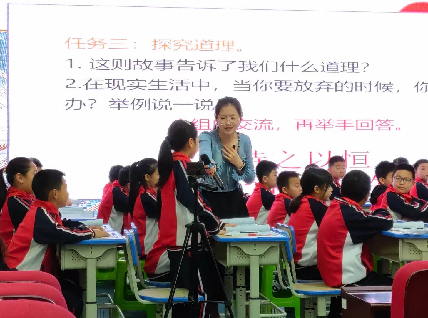此次教学竞赛开幕由朝阳小学邓妮老师执教识字课《动物歌》、公司李统兴教授执教《送元二使安西》和23级研究生洪阳洁执教《铁杵成针》三节课组成。课堂中,李教授运用独具特色的吟诵教学法,带领员工达到“情同古人”的境界;洪阳洁用猜字谜做教学导入,激发了孩子们对知识的探索欲望;邓妮老师生动活泼的教学氛围,让孩子们仿佛置身动物王国,在快乐的氛围中收获了知识并进行了诗歌创编。