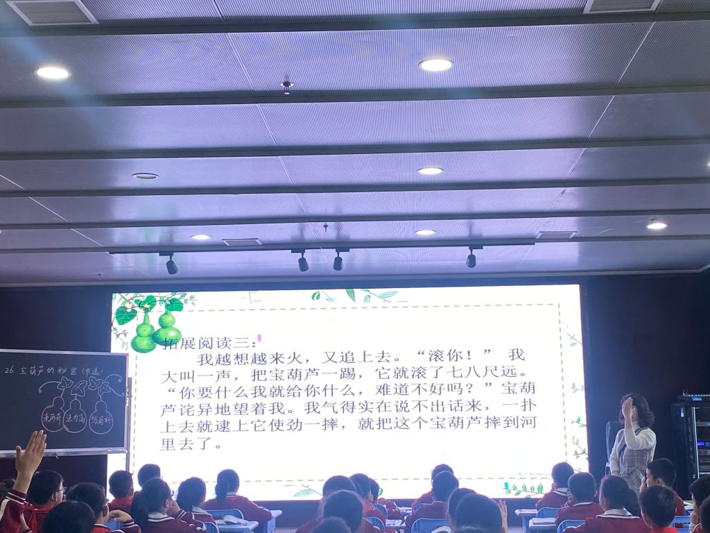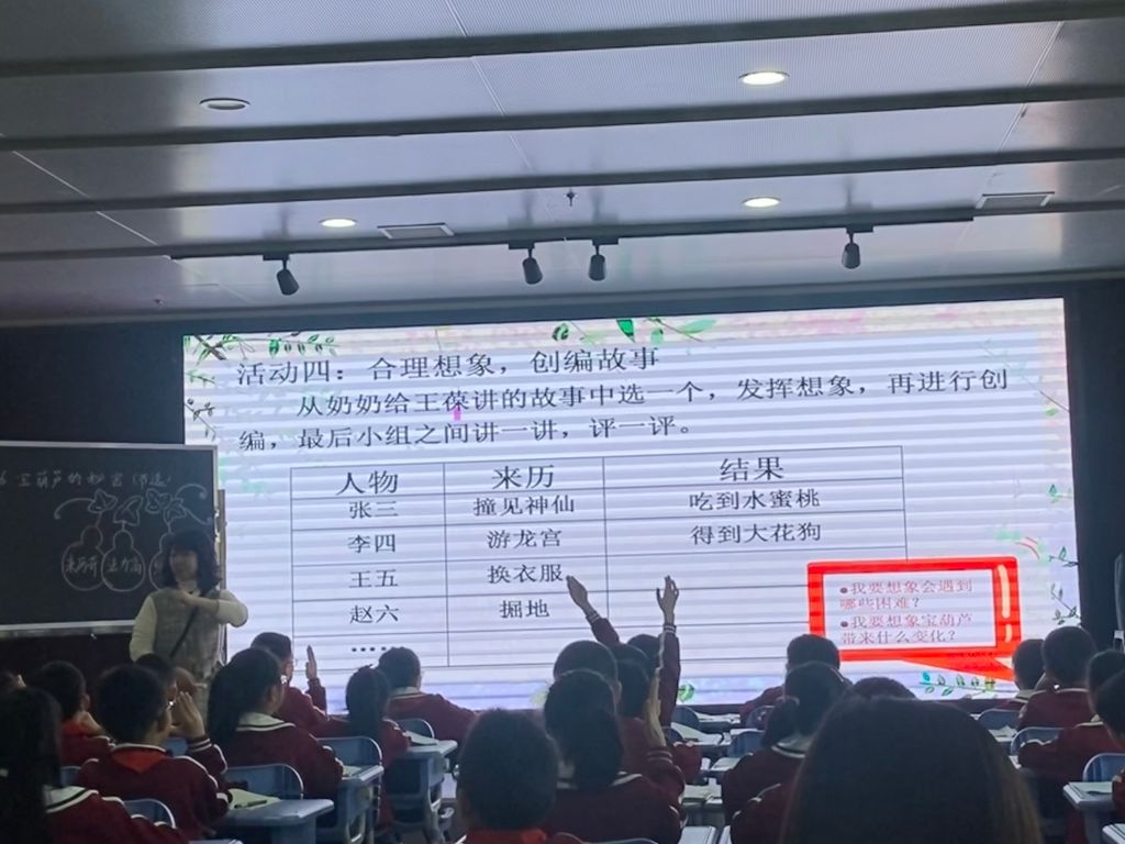 此次示范课共设三节。第一节是由魏迎霞执教的一年级数学《找规律——元宵里的数学》,魏迎霞的课堂活动设计创意十足,能迅速捕捉到员工的观察能力,并从实际中引导孩子发现生活中的规律。第二节是由刘丹丹所执教的四年级语文《宝葫芦的秘密》(节选)第二课时,她的板书新颖漂亮,任务设计环环相扣,活动充分发挥了员工的想象力。第三节是由郑玮呈现的六年级英语课堂《Last weekend》,对过去式单词的发音处理得精准到位,郑玮课堂中的每一次提问都在引导员工思考和表达,充分锻炼了员工的口语能力和思维的发展。