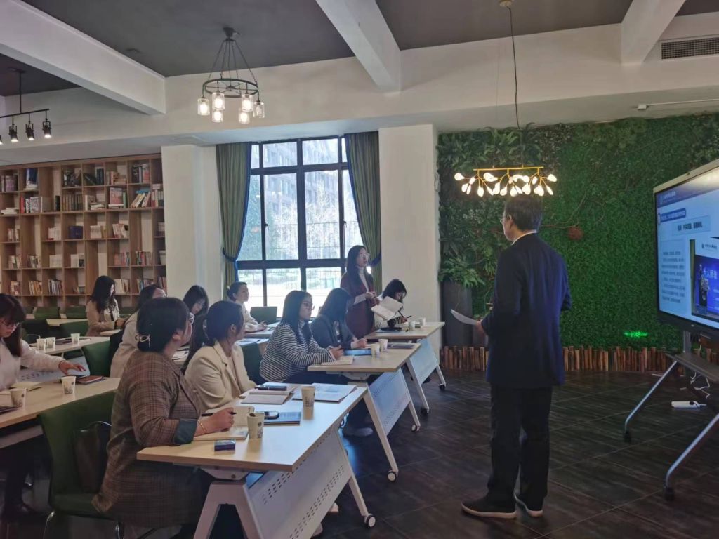 在郡华公司谢筱君老师的带领下,同学参观了美丽的校园,具备大数据平台的现代化图书馆,以及富有特色的家长接待中心,了解了公司的日常教学活动。随后董事长周德保老师与同学们展开了深入座谈,重点研讨了新时期民办公司面临的新问题,对民办公司未来之路的思考以及郡华中学为实现高质量发展的做法。探索并构建了“先学后教,合作探究,当堂达标”的课堂模式,建设四有课堂:眼中有员工,心中有课标,手中有方法,胸中有情怀。
