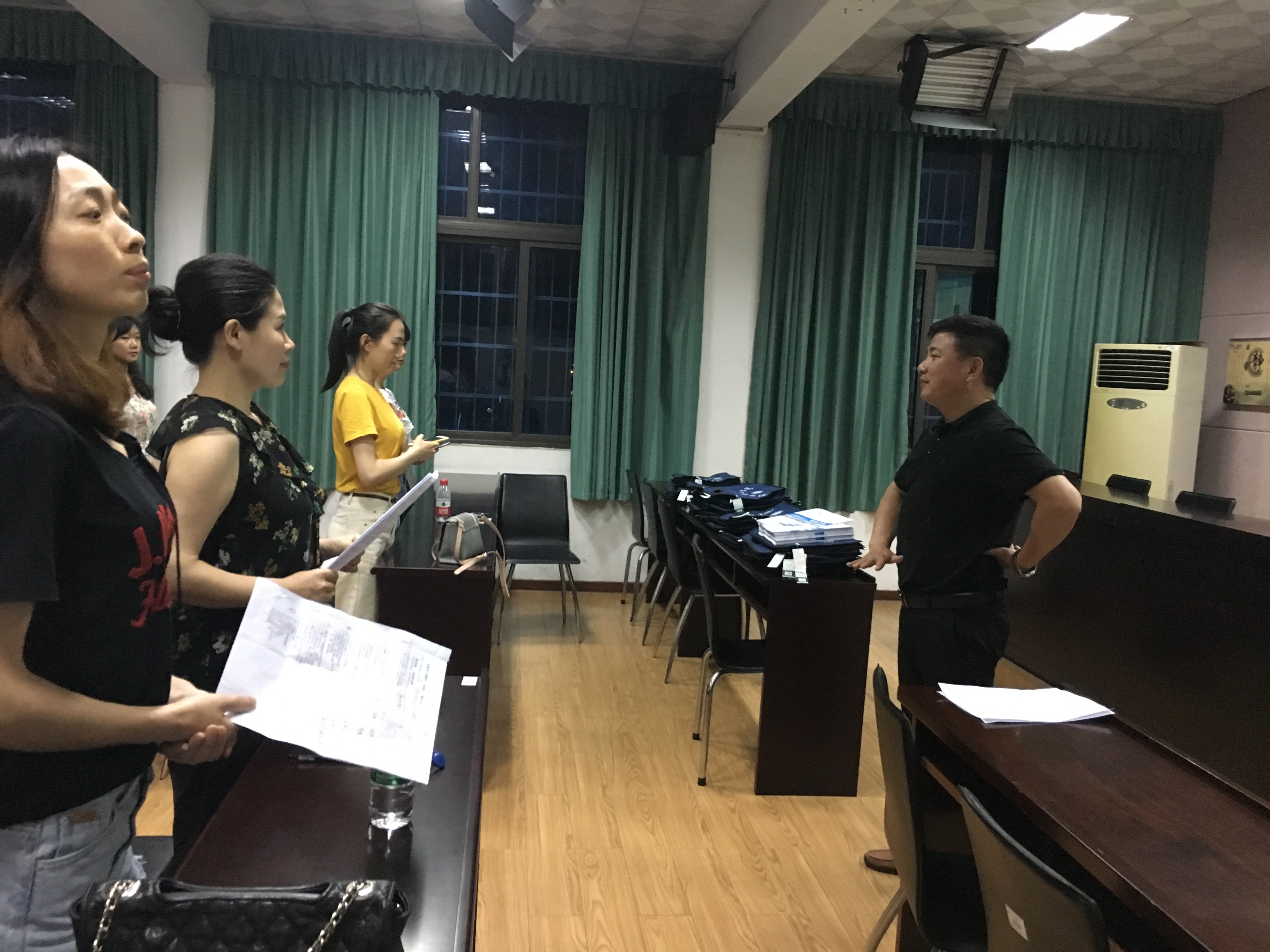 黄皓华老师非常关心教科院研究生演出节目的排演状况。他刚从长沙出差赶回岳阳,就来到现场,并强忍着肾结石带来的疼痛,给员工精心指导,并以身示范。现场的研究生听从黄老师的指导,在陈晋琼同学组织下,用心吟诵、倾心体悟。当晚排演持续两个小时后结束。