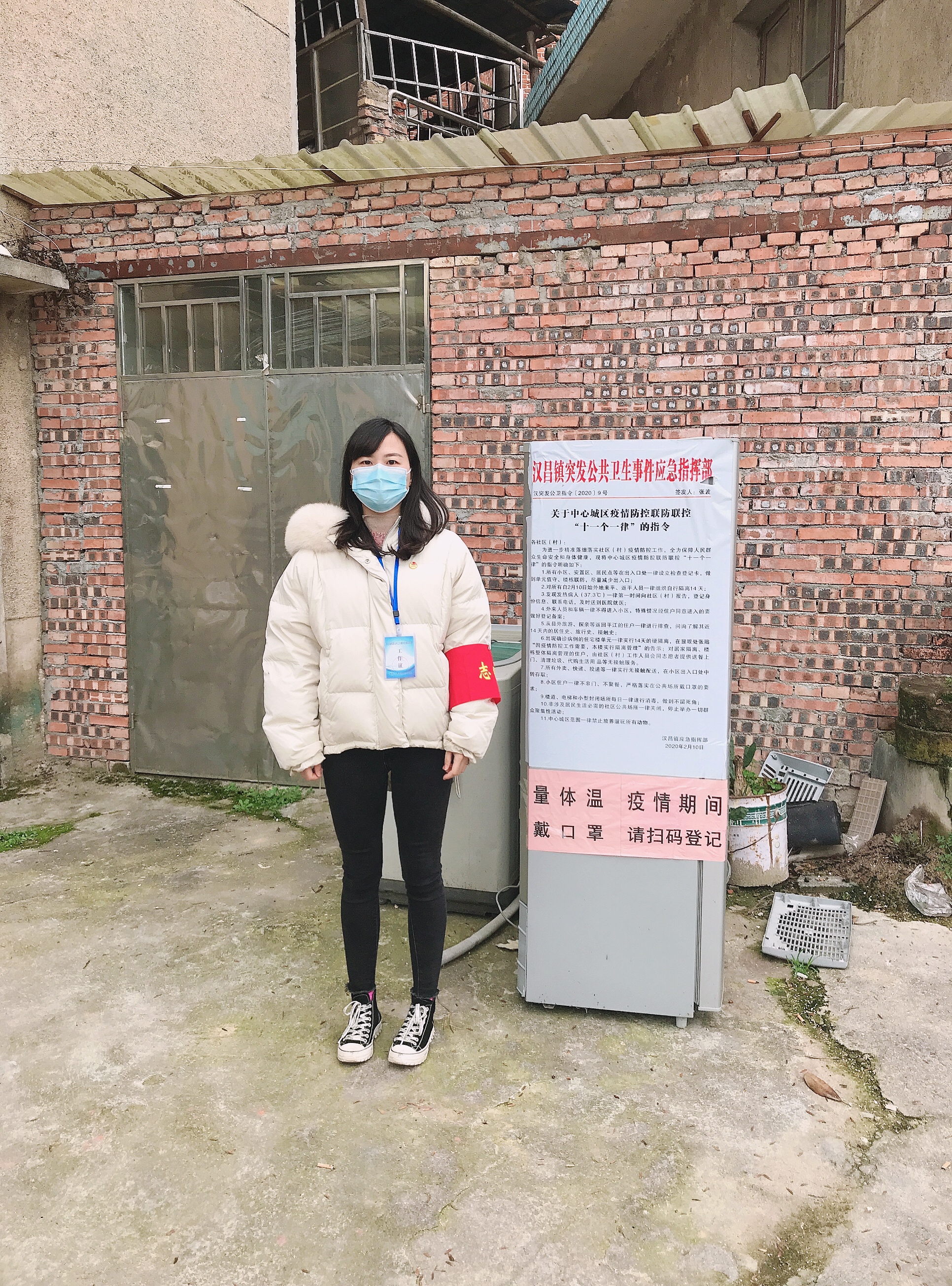 “因防控新冠肺炎疫情工作需要,根据县突发公共卫生事件应急指挥部要求,面向社会招募疫情防控志愿者1000名,参与县城中心城区疫情防控志愿服务活动……”2020年2月10日晚,2019级教育管理硕士研究生罗艳伟,看到朋友圈这条消息后,立刻报名投身战“疫”。2月11日清晨,她成为平江团县委组建的青年突击队一员,响应“小作战单元”的指令,在平江县汉昌镇金华社区展开24小时两班倒的值班值守。她的工作任务主要是每天站在寒冷的路口为进出人员提供体温监测、出行防护、信息登记服务,引导群众居家防护、减少外出、拒绝聚集。同时还组织各住户代表建立网格微信群,每天在群内宣传疫情动态和防疫知识,报送是否有发热、咳嗽的情况,群防群治,合力筑牢疫情防控墙,确保本网格防控工作有序开展。
