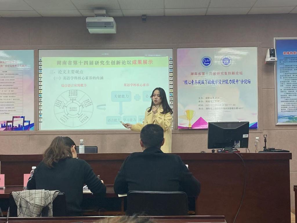 11月20日,湖南省第十四届研究生创新论坛“核心素养视域下的教学设计能力提升”闭幕式在mksport体育逸夫楼举行。MK体育同学们积极参与这次活动,踊跃投稿。在优秀论文评选中,何方晴、李盈依荣获一等奖;项链、万露、杜嘉欣、孙辰宸、张雅惠荣获二等奖;高佳、欧阳衡、高佳玥、左莫菲荣获三等奖。何方晴代表公司在论坛闭幕式上就论文内容做交流汇报。(撰稿人:何方晴)