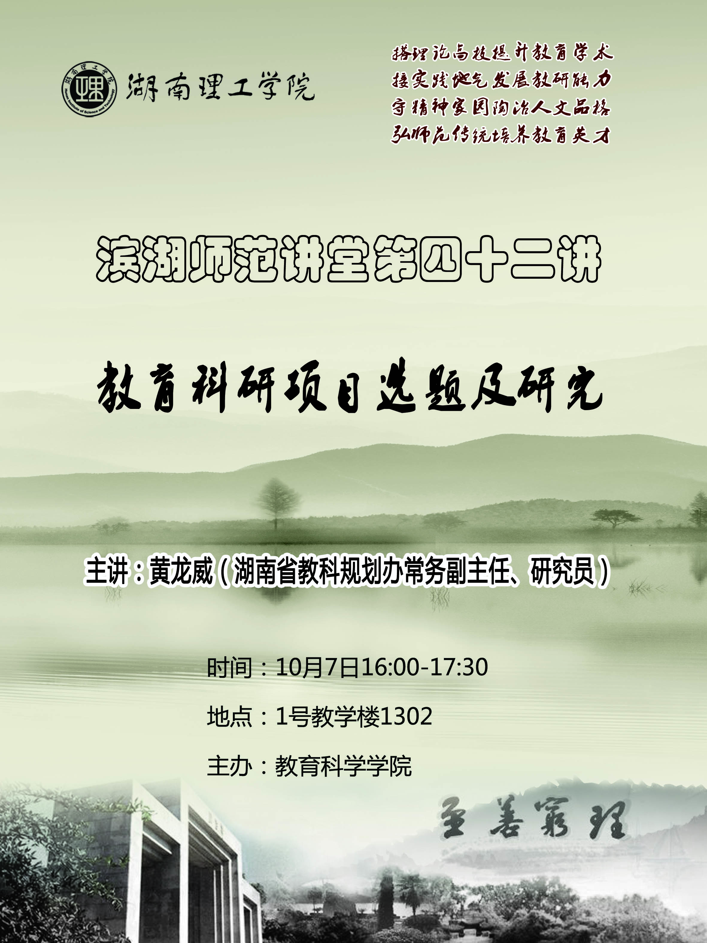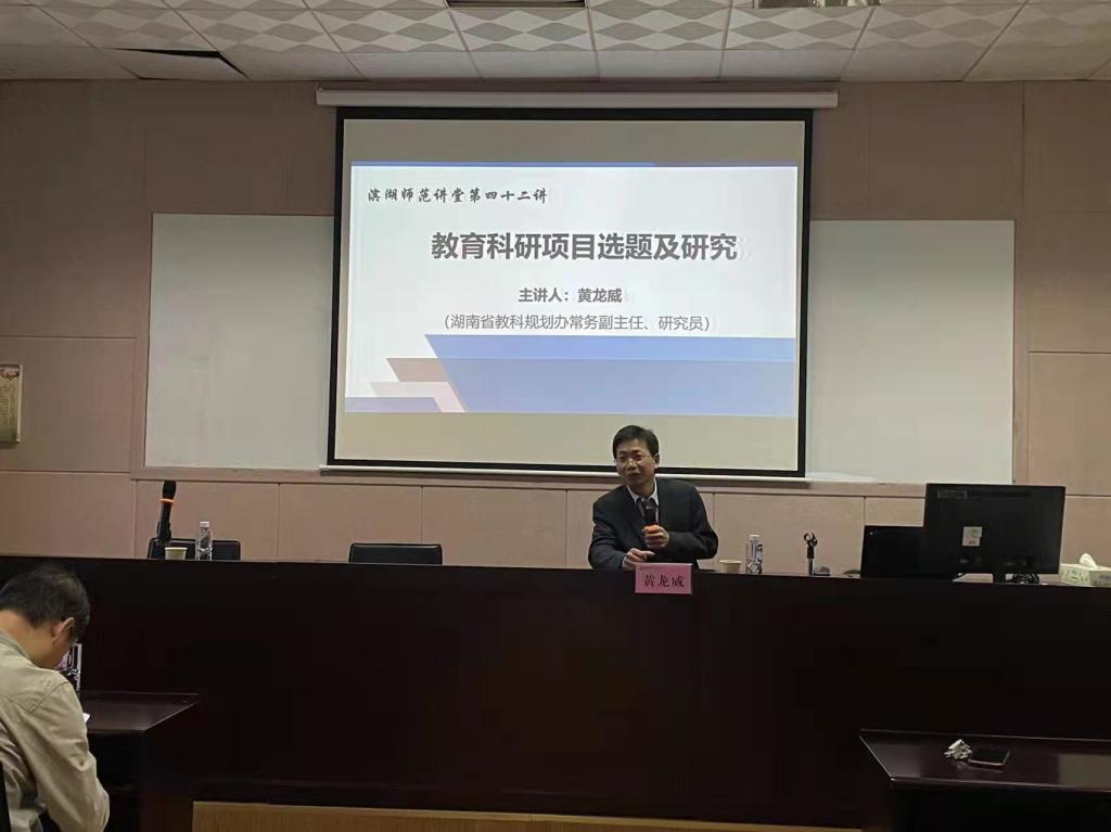 10月7日下午,MK体育主办的“滨湖师范讲堂”第四十二讲在1302教室举行。莅临本次讲座的嘉宾是湖南省教科规划办常务副主任、研究员黄龙威。讲座由MK体育副经理彭阳红主持,公司省级教育科学规划课题主持人及教育管理、小学教育专业部分研究生参加。