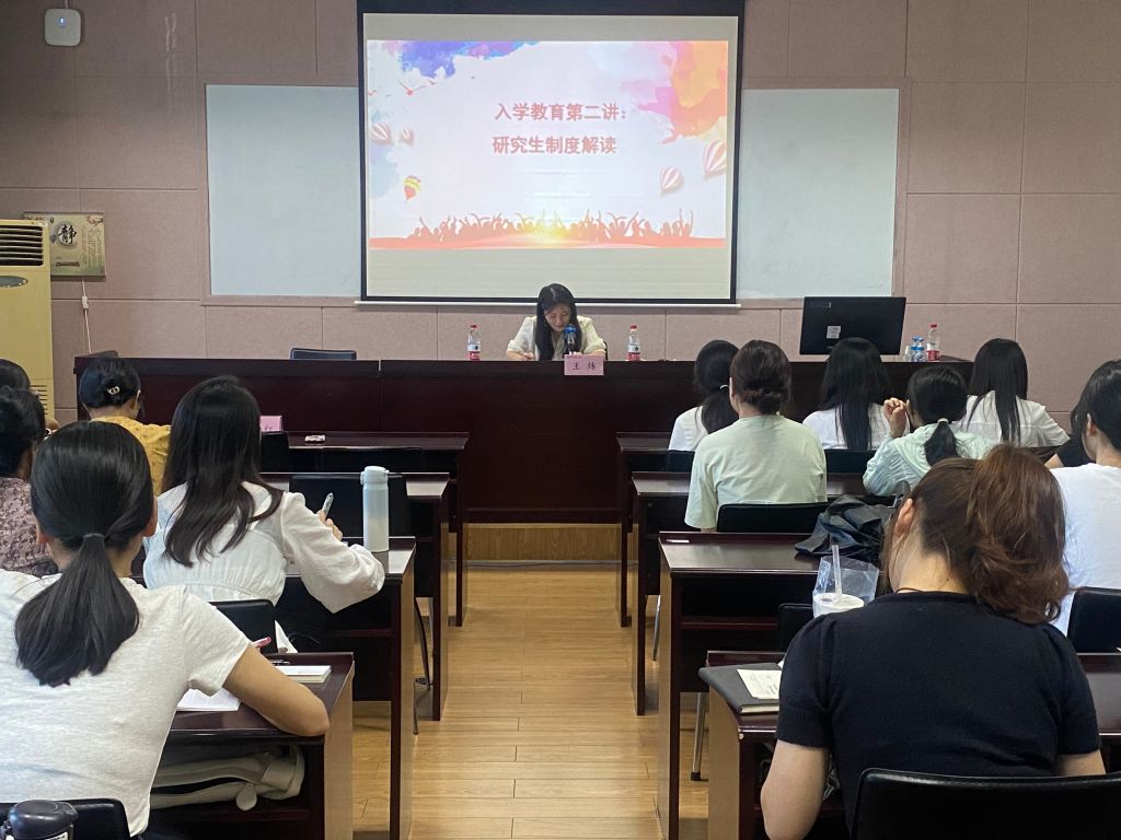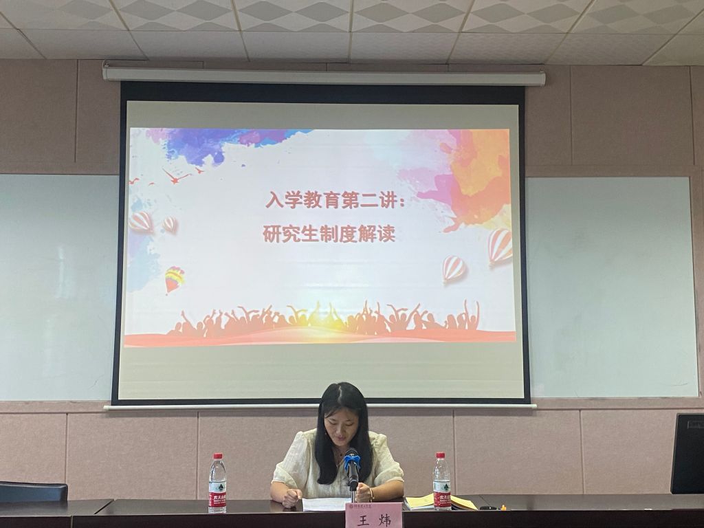 915日下午,MK体育2023级硕士研究生入学教育在1号教学楼1302举行,辅导员王炜给全体新生解读公司研究生管理规章制度。全体2023级研究生新生参加。