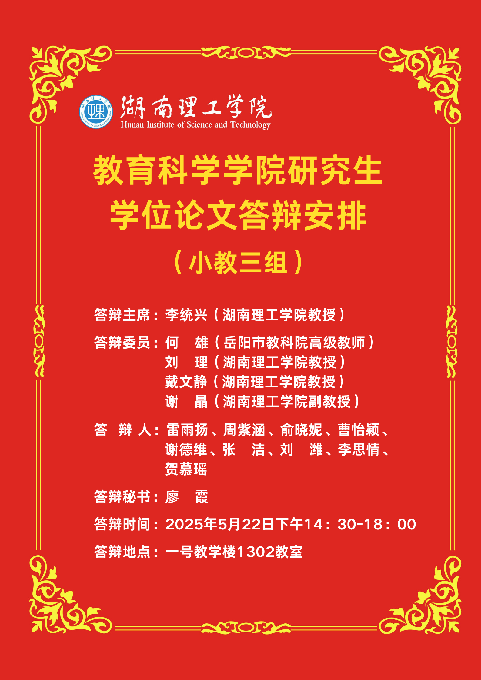 [公告]2023级研究生学位论文答辩安排