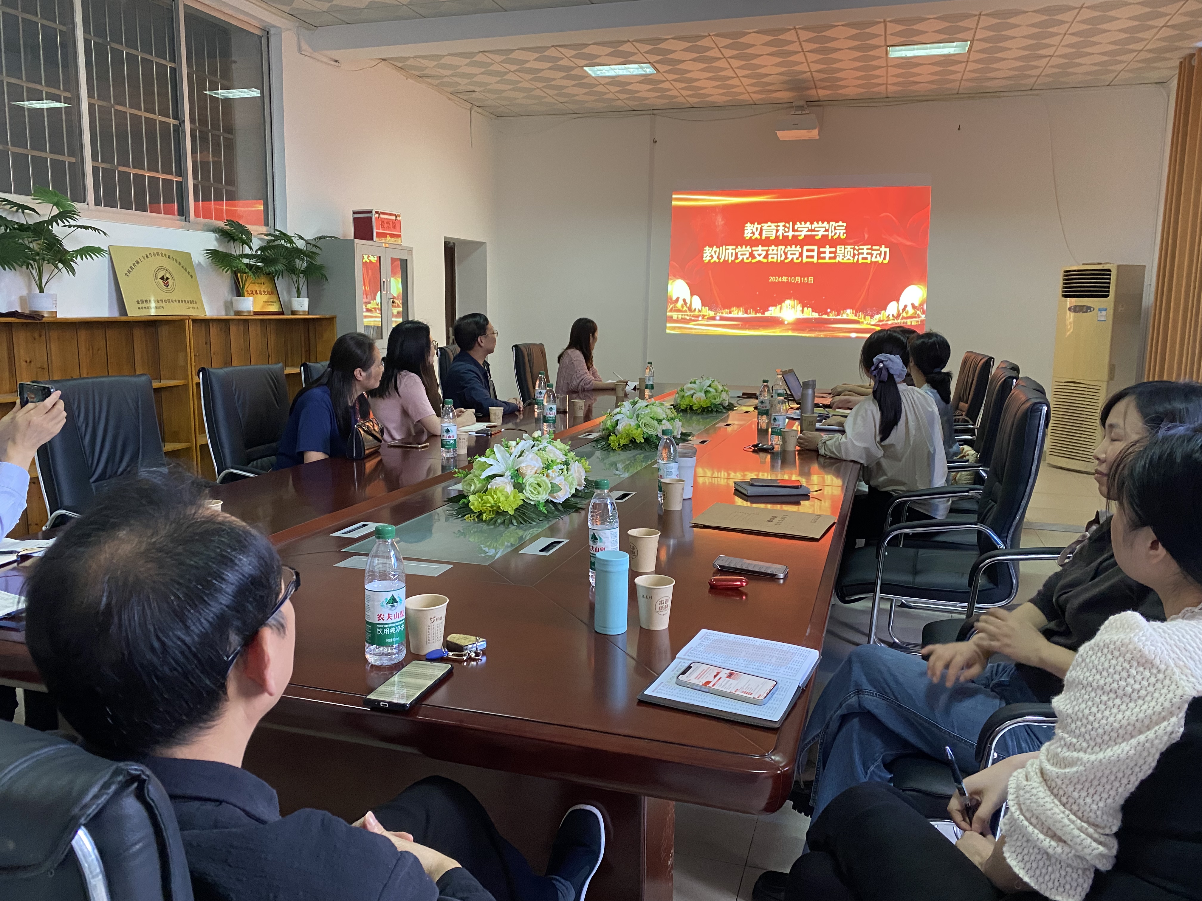 10月15日下午2:30,教师党支部在公司会议室开展了党日主题活动,深入学习全国教育大会精神,开展党纪学习教育。活动由公司党总支委员、教师党支部书记洪冬美主持,全体教师党员参加,主持行政工作副经理彭阳红、分工会主席隋幸华全程列席参与。