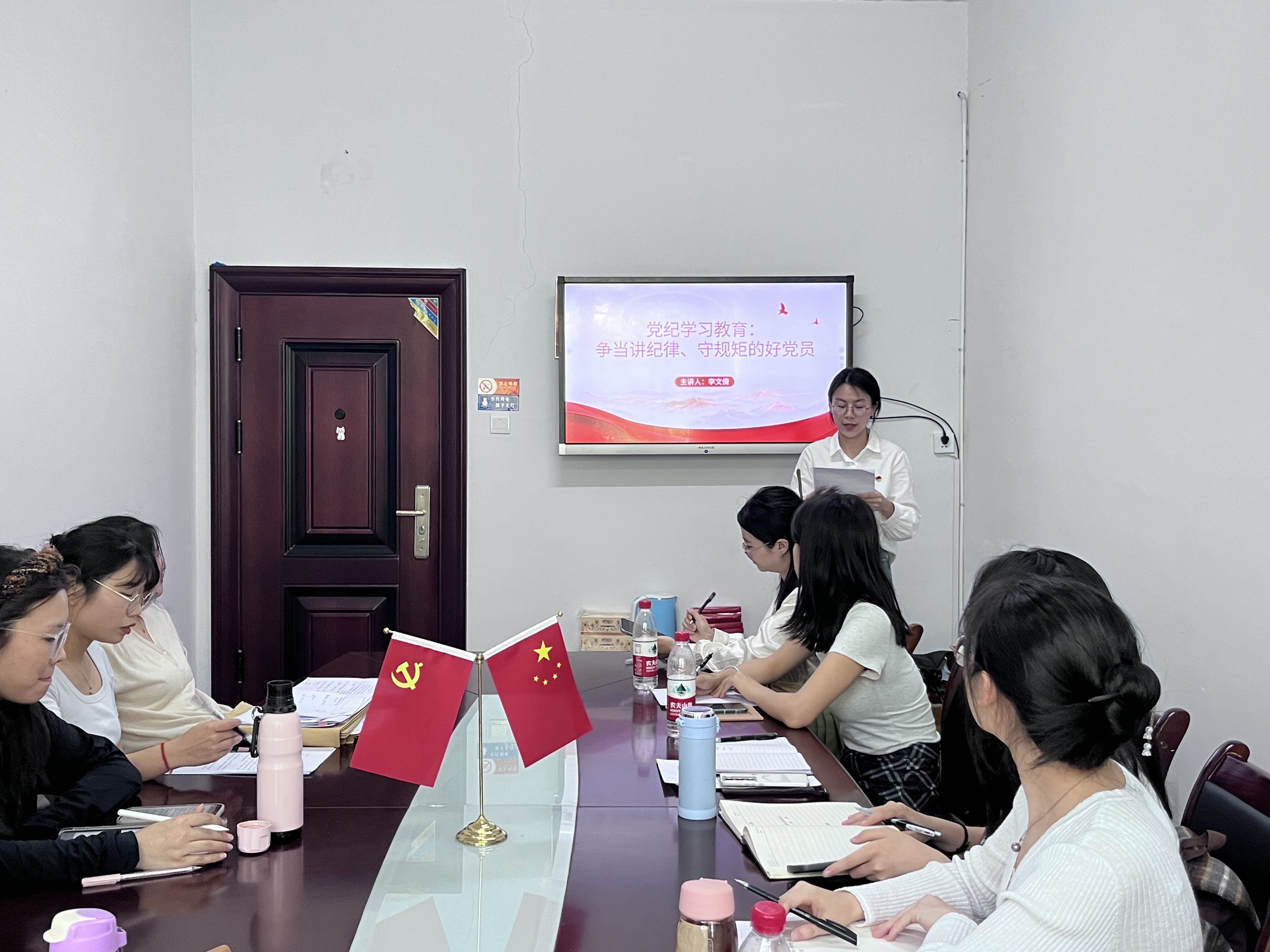 李文倩以“争当讲纪律、守规矩的好党员”为教育专题,带领全体党员深入学习贯彻习近平总书记关于加强党的纪律建设的重要论述和关于党纪学习教育的重要讲话重要指示精神。李文倩从“不当走马观花的‘过客’,躬身力学,让党纪学习走深走实”、“不当置身事外的‘看客’,躬身自省,让警示教育增值增效”、“不当口若悬河的‘谈客’,躬身笃行,让党性修养入心入行”三个方面进行阐释。她指出,党员同志要坚持底线思维,敬畏纪律,保持党的先进性和纯洁性,争当讲纪律、守纪律的表率。